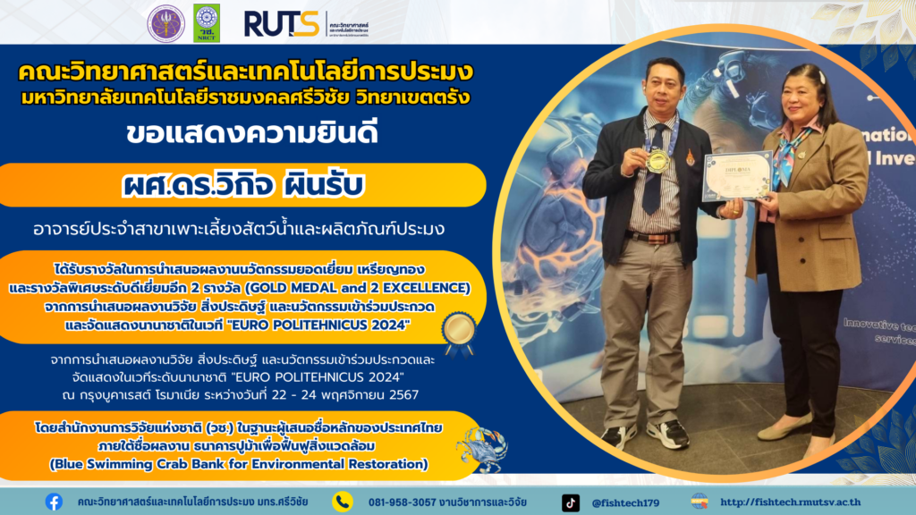 คณะวิทยาศาสตร์และเทคโนโลยีการประมง ขอแสดงความยินดี ผู้ช่วยศาสตราจารย์ ดร.วิกิจ ผินรับ