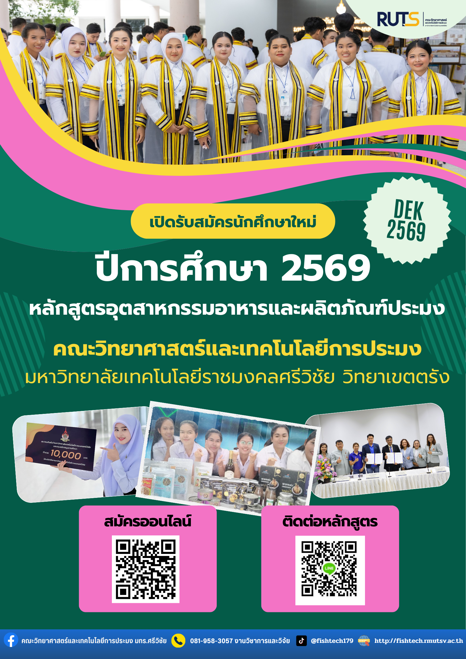 #คณะวิทยาศาสตร์และเทคโนโลยีการประมง มทร.ศรีวิชัย วิทยาเขตตรัง เปิดรับสมัครนักศึกษาใหม่ ระดับปริญญาตรี (4 ปี) ประจำปีการศึกษา 2569 สำหรับน้อง ๆ ม.6 หรือเทียบเท่า (ทุกแผนการเรียน)