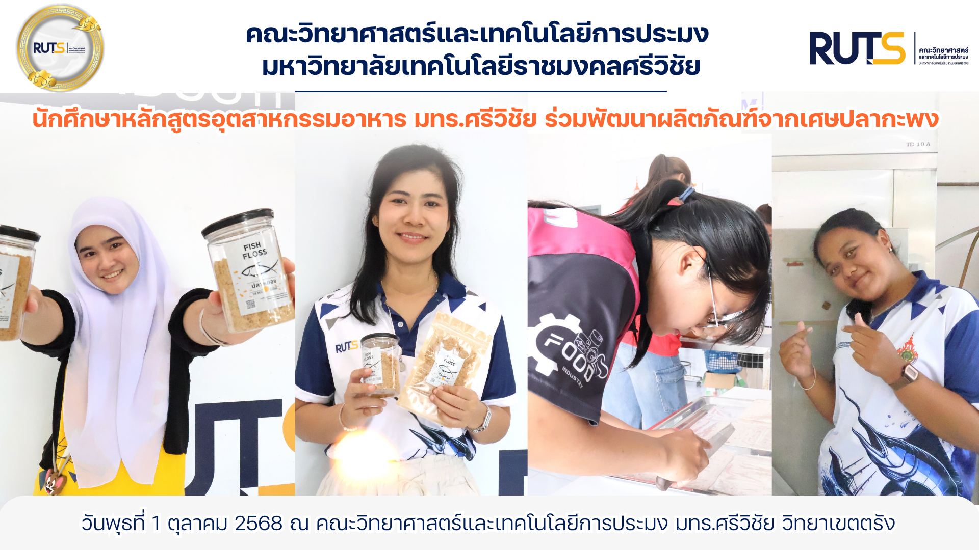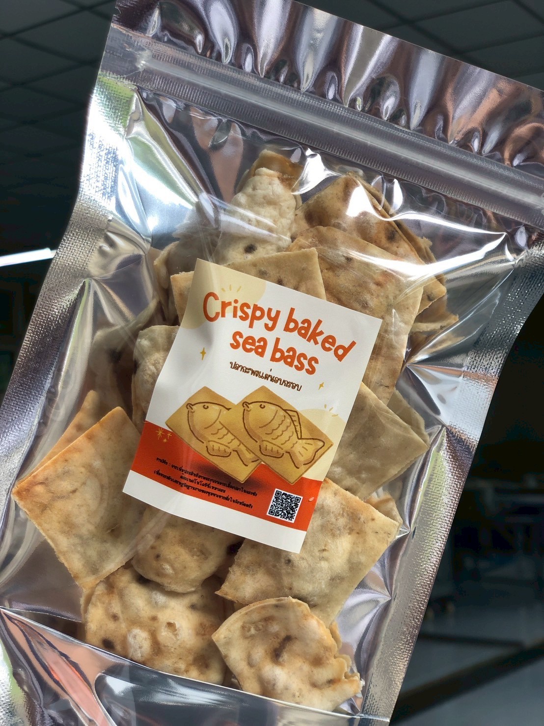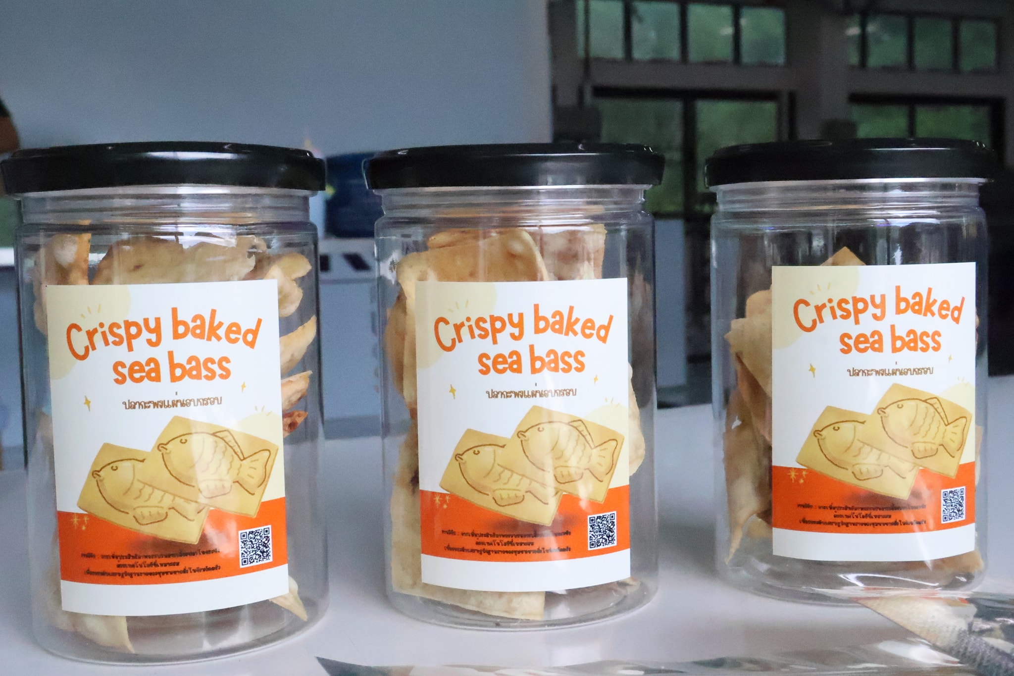 นักศึกษาหลักสูตรอุตสาหกรรมอาหาร คณะวิทยาศาสตร์และเทคโนโลยีการประมง ได้มีโอกาสร่วมมือกับโครงการวิจัยในการพัฒนาและแปรรูปเศษปลากะพงขนาดเล็ก ซึ่งเป็นวัสดุเหลือใช้จากกระบวนการผลิตในอุตสาหกรรมประมง ให้กลายเป็นผลิตภัณฑ์อาหารพร้อมบริโภค ได้แก่ ปลากะพงแผ่นอบกรอบ และ ปลาหยองปรุงรส ที่มีคุณค่าทางโภชนาการสูง และสามารถต่อยอดเชิงพาณิชย์ได้