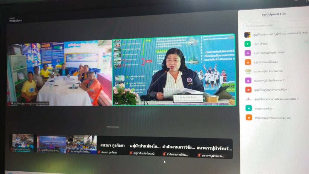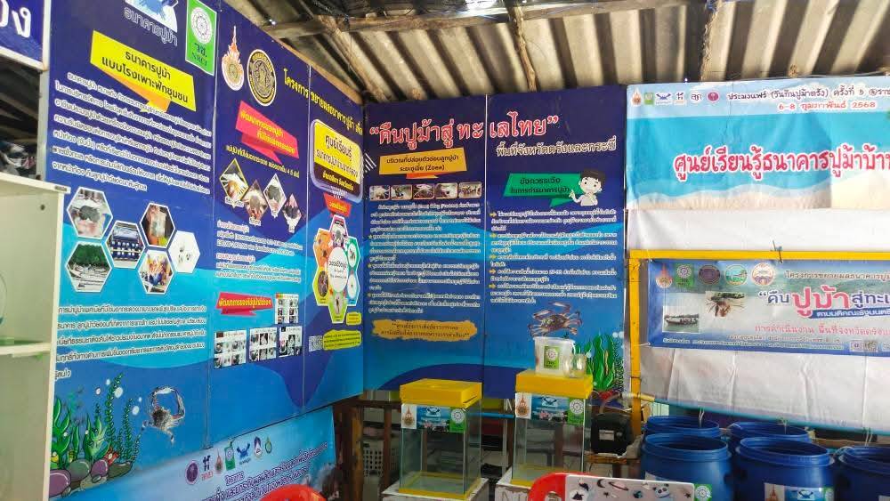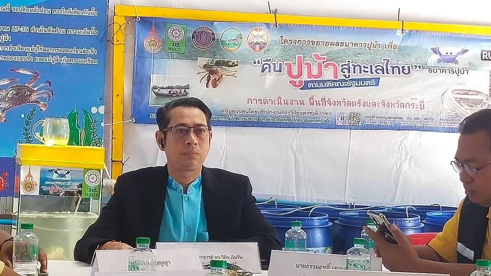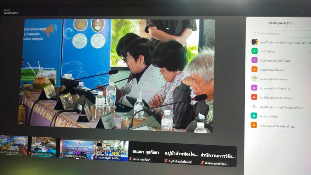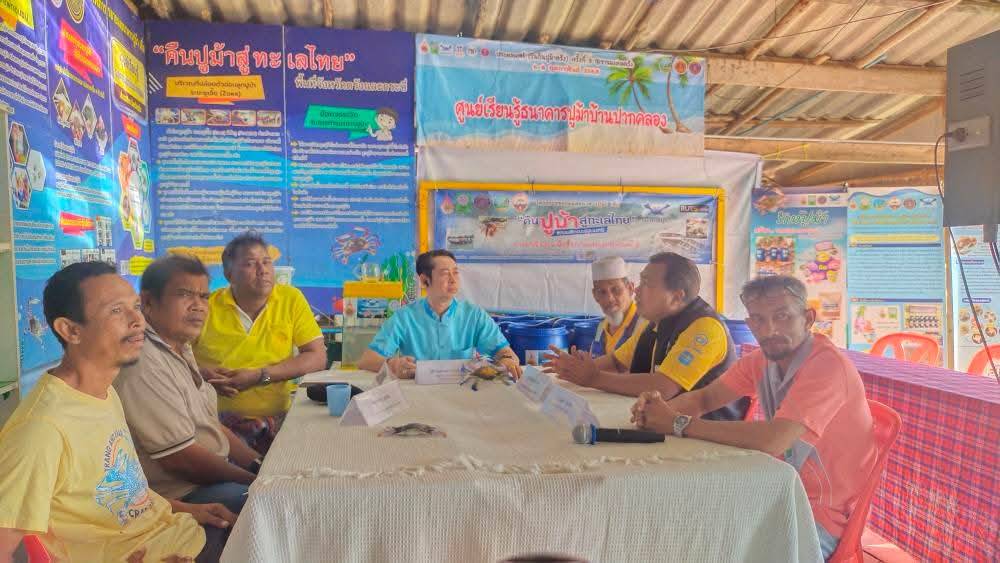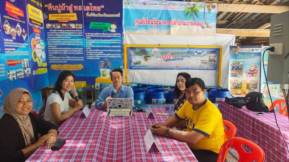 พร้อมด้วย นายปรีชา ชายทุย ประธานศูนย์เรียนรู้ธนาคารปูม้าบ้านมดตะนอย 2 จังหวัดตรัง เข้าร่วมการเสวนาเรื่อง พลังชุมชนธนาคารปูม้าสู่รางวัลเลิศรัฐ “ดีเด่น”