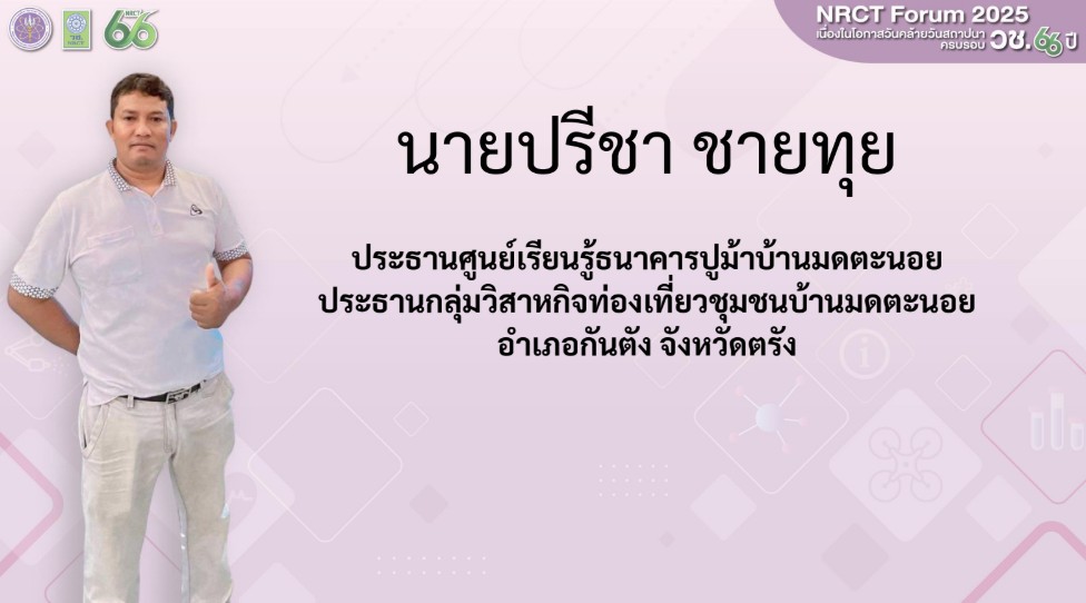 ในงาน NRCT Forum 2025 เนื่องในวันคล้ายวันสถาปนา วช. ครบรอบ 66 ปี วันเสาร์ที่ 29 พฤศจิกายน 2568 ณ ห้องประชุมจอมพลสฤษดิ์ ธนะรัชต์ ชั้น 2 อาคาร วช.1 สำนักงานการวิจัยแห่งชาติ (วช.) กรุงเทพมหานคร