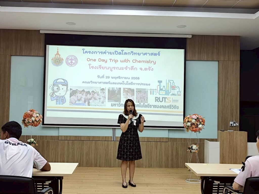 คณะวิทยาศาสตร์และเทคโนโลยีการประมง มหาวิทยาลัยเทคโนโลยีราชมงคลศรีวิชัย วิทยาเขตตรัง ได้จัดโครงการ “One Day Trip with Chemistry” สำหรับนักเรียนระดับชั้นมัธยมศึกษาปีที่ 4 จากโรงเรียนบูรณะรำลึก อำเภอเมือง จังหวัดตรัง จำนวน 32 คน ประกอบด้วยนักเรียน 30 คน และคณะครู 2 คน เมื่อวันเสาร์ที่ 29 พฤศจิกายน 2568 ณ คณะวิทยาศาสตร์และเทคโนโลยีการประมง มทร.ศรีวิชัย วิทยาเขตตรัง