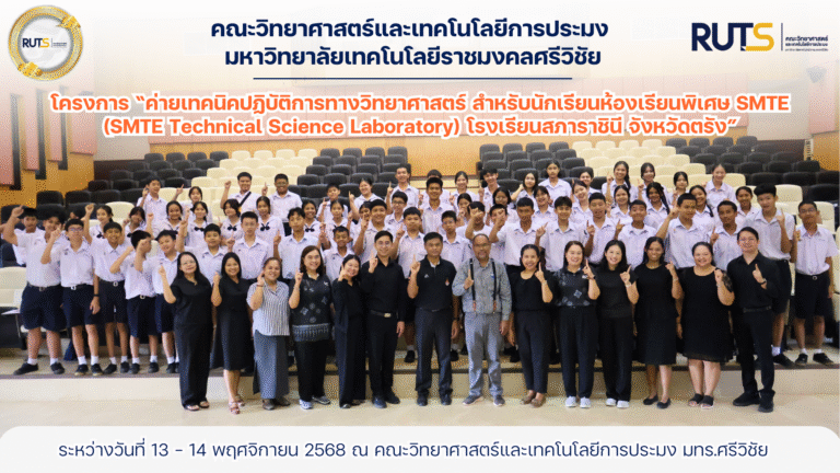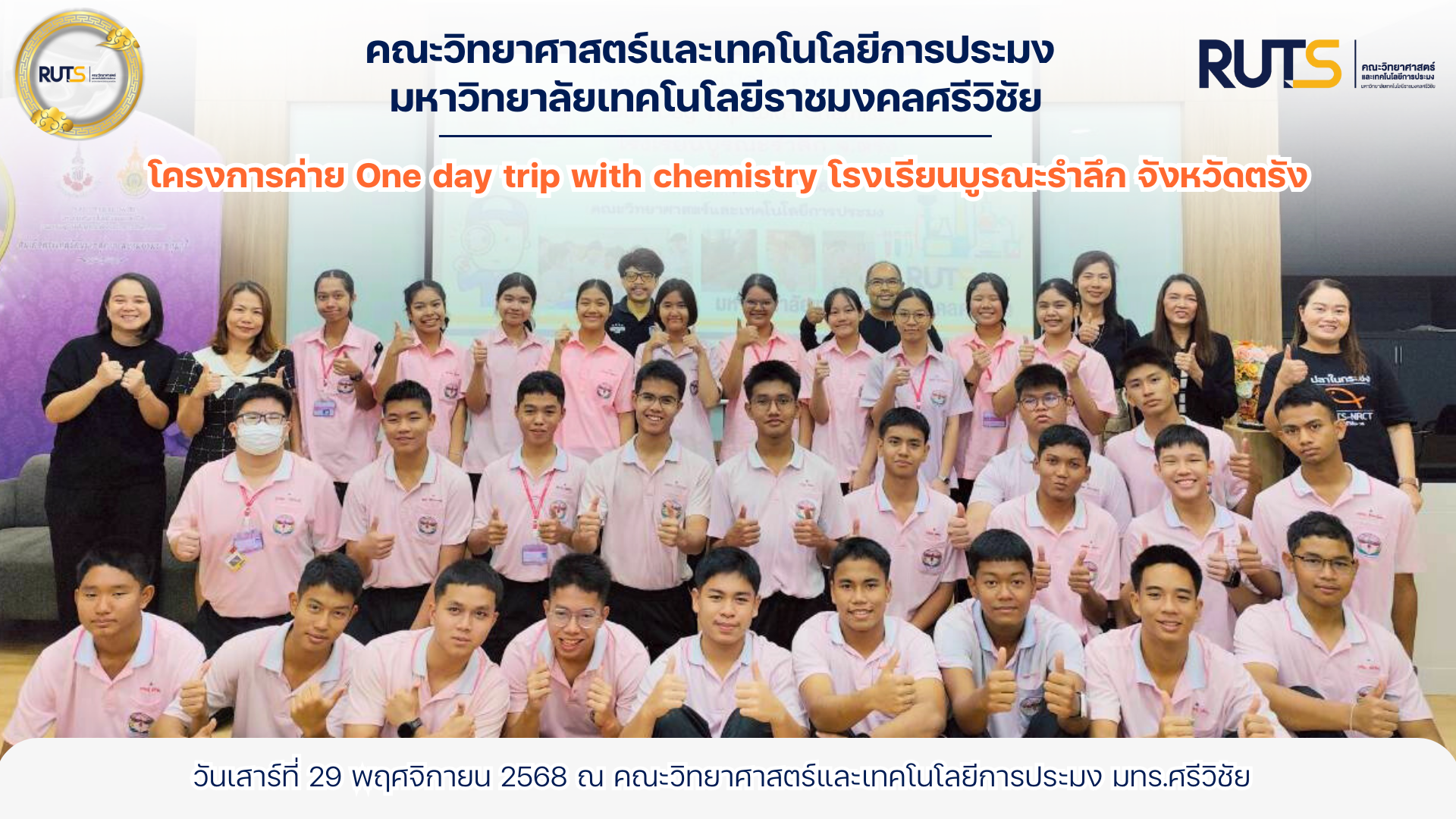 คณะวิทยาศาสตร์และเทคโนโลยีการประมง มหาวิทยาลัยเทคโนโลยีราชมงคลศรีวิชัย วิทยาเขตตรัง ได้จัดโครงการ “One Day Trip with Chemistry” สำหรับนักเรียนระดับชั้นมัธยมศึกษาปีที่ 4 จากโรงเรียนบูรณะรำลึก อำเภอเมือง จังหวัดตรัง จำนวน 32 คน ประกอบด้วยนักเรียน 30 คน และคณะครู 2 คน เมื่อวันเสาร์ที่ 29 พฤศจิกายน 2568 ณ คณะวิทยาศาสตร์และเทคโนโลยีการประมง มทร.ศรีวิชัย วิทยาเขตตรัง