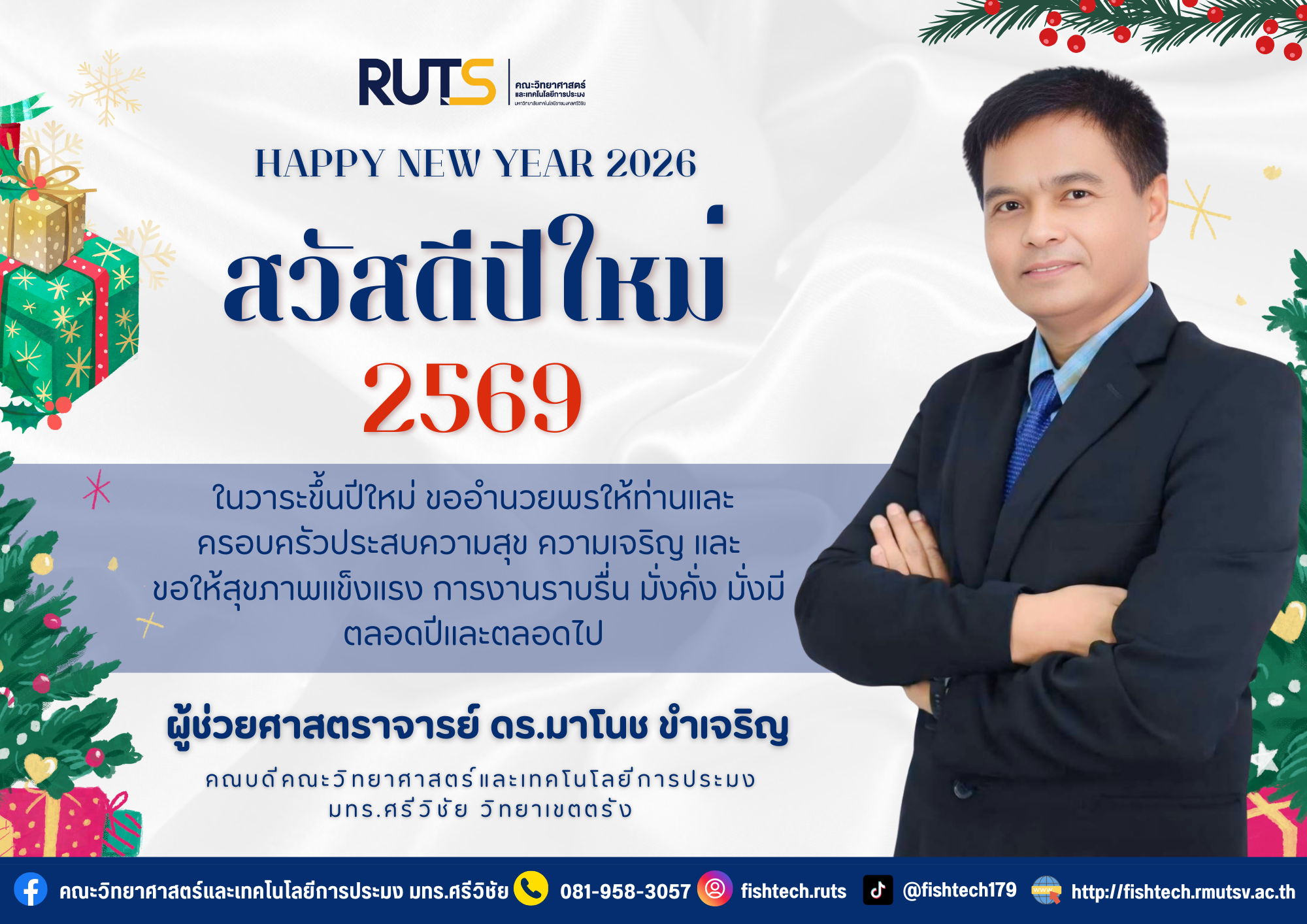 Happy New Year 2026 สวัสดีปีใหม่ 2569 ในวาระขึ้นปีใหม่ ขออำนวยพรให้ท่านและ ครอบครัวประสบความสุข ความเจริญ และขอให้สุขภาพแข็งแรง การงานราบรื่น มั่งคั่ง มั่งมี ตลอดปีและตลอดไป