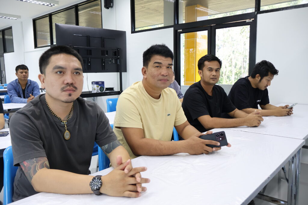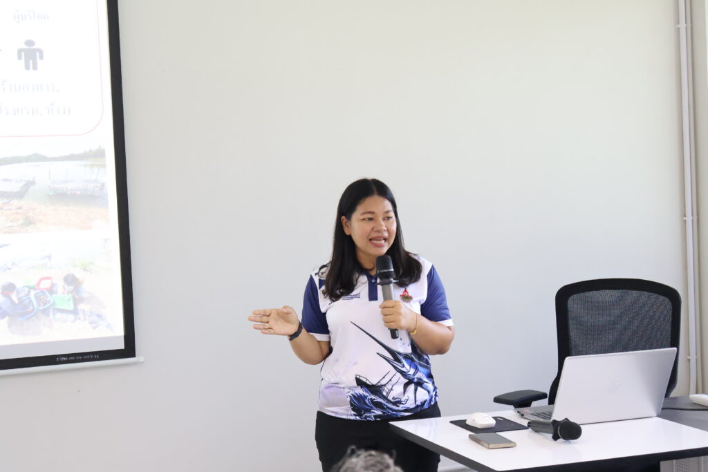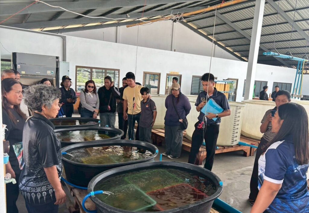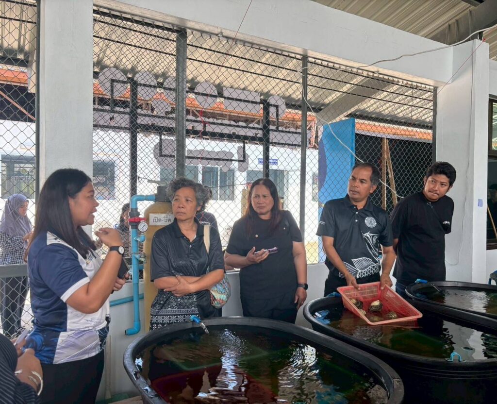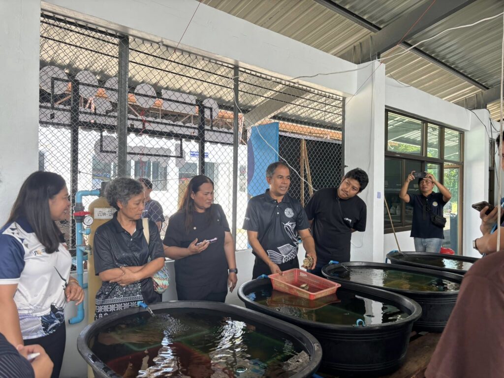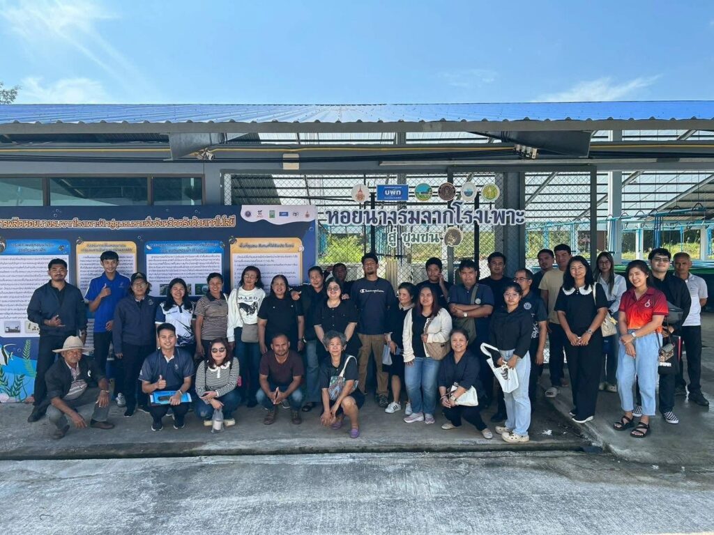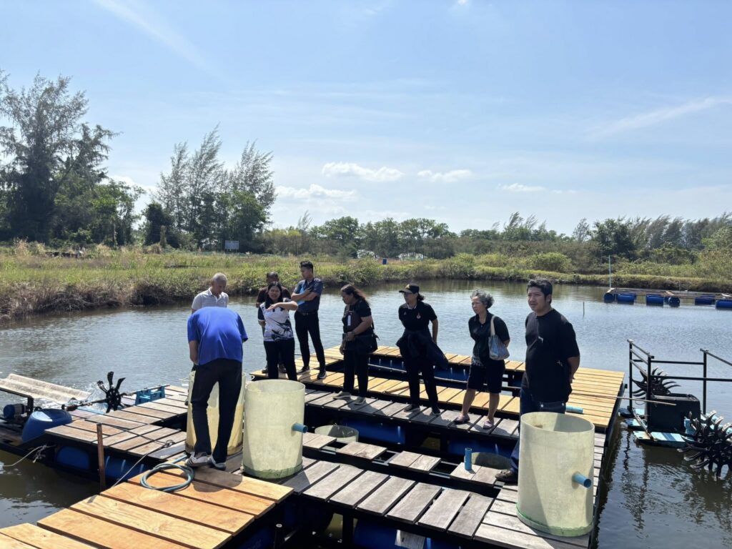 ในช่วงภาคบ่าย มีการพาผู้เข้าร่วมโครงการลงพื้นที่ศึกษาดูงาน ณ ฟาร์มตัวอย่างบ้านบางค้างคาว โดยได้รับความอนุเคราะห์จาก นายมานิต ภักดีย่อง และสมาชิกเกษตรกรผู้เลี้ยงหอยนางรม อำเภอสิเกา จังหวัดตรัง ร่วมถ่ายทอดประสบการณ์จริงด้านการบริหารจัดการฟาร์ม การลดต้นทุน และการเพิ่มผลผลิตจากเกษตรกรต้นแบบ