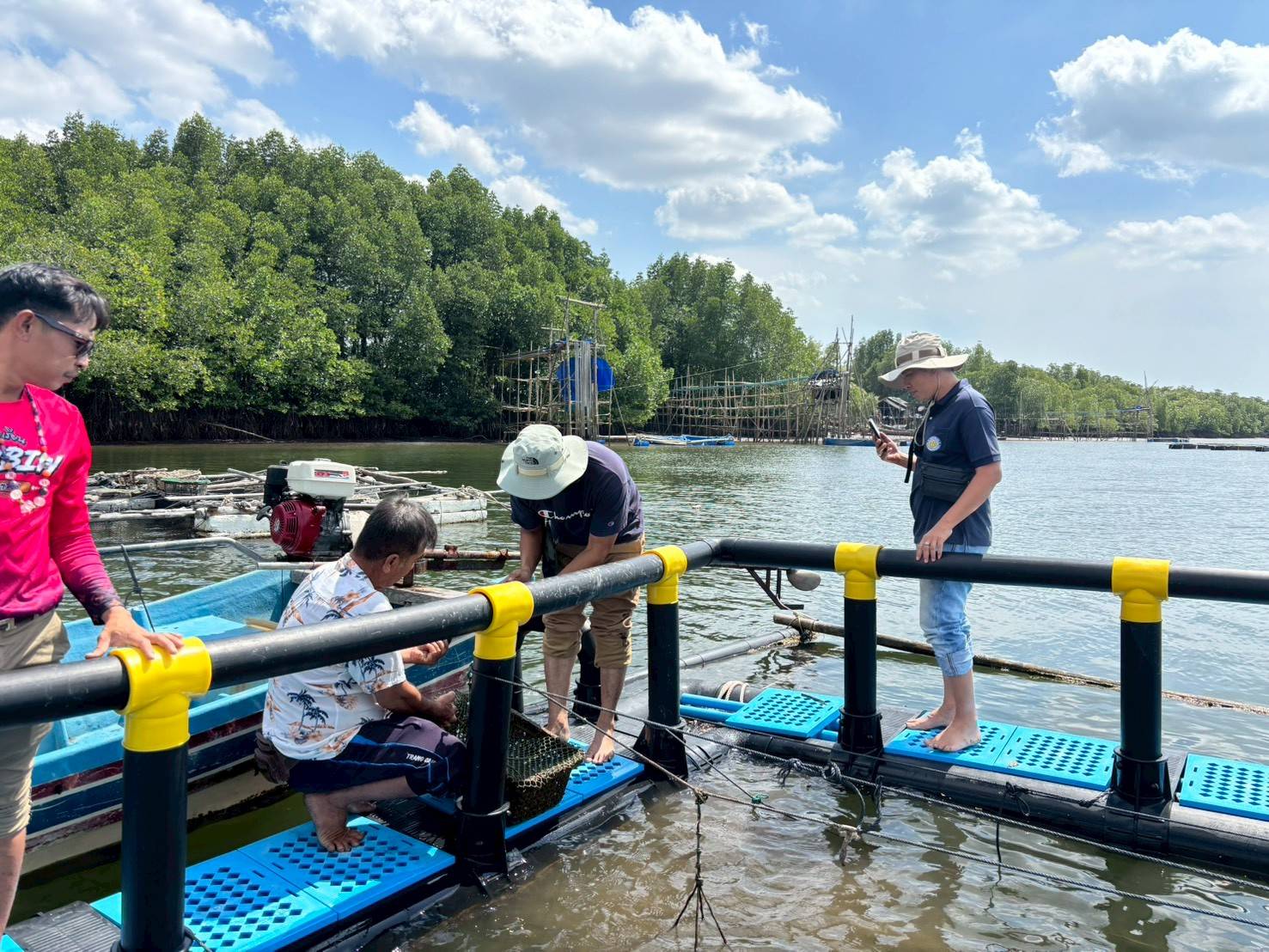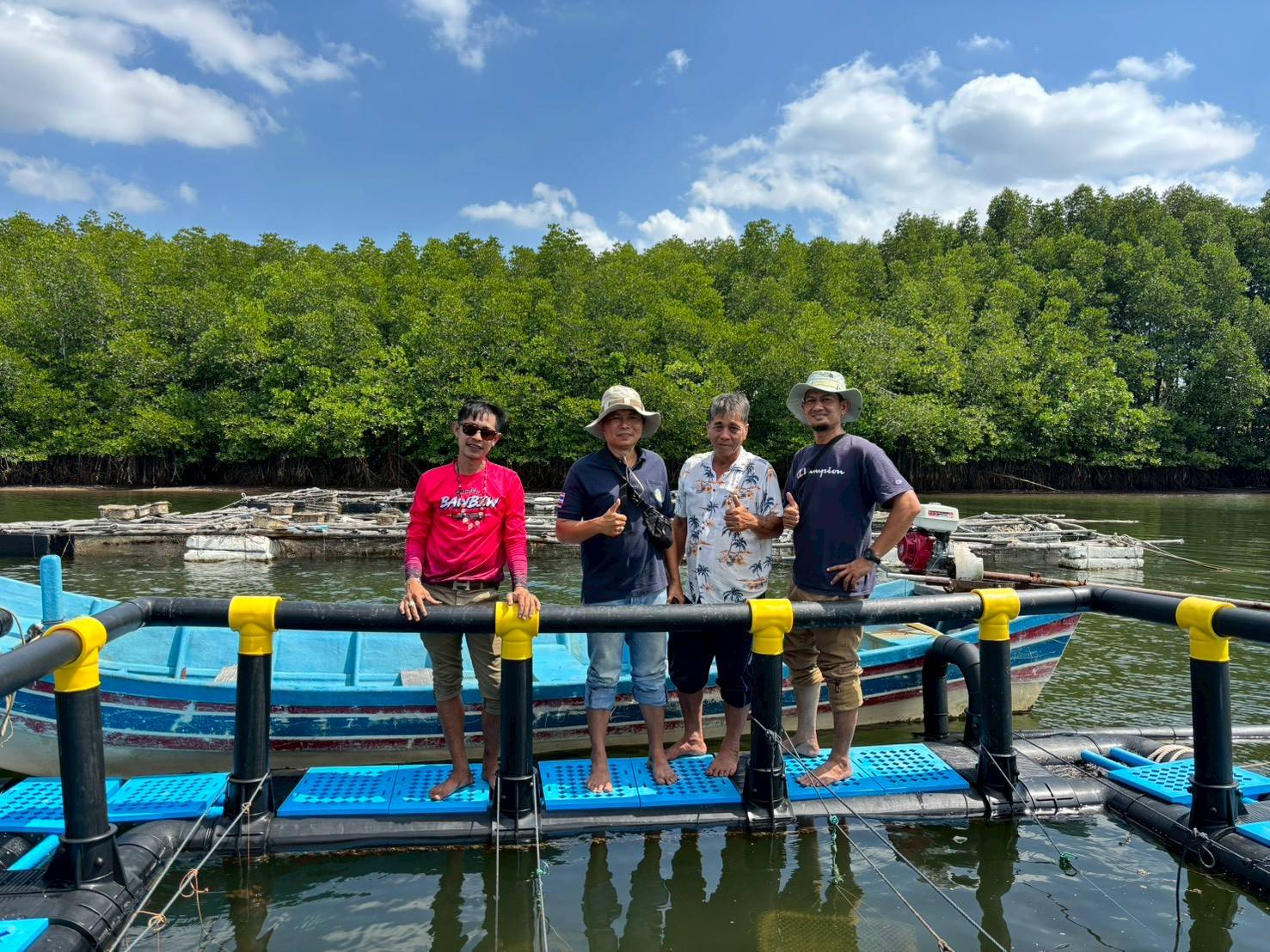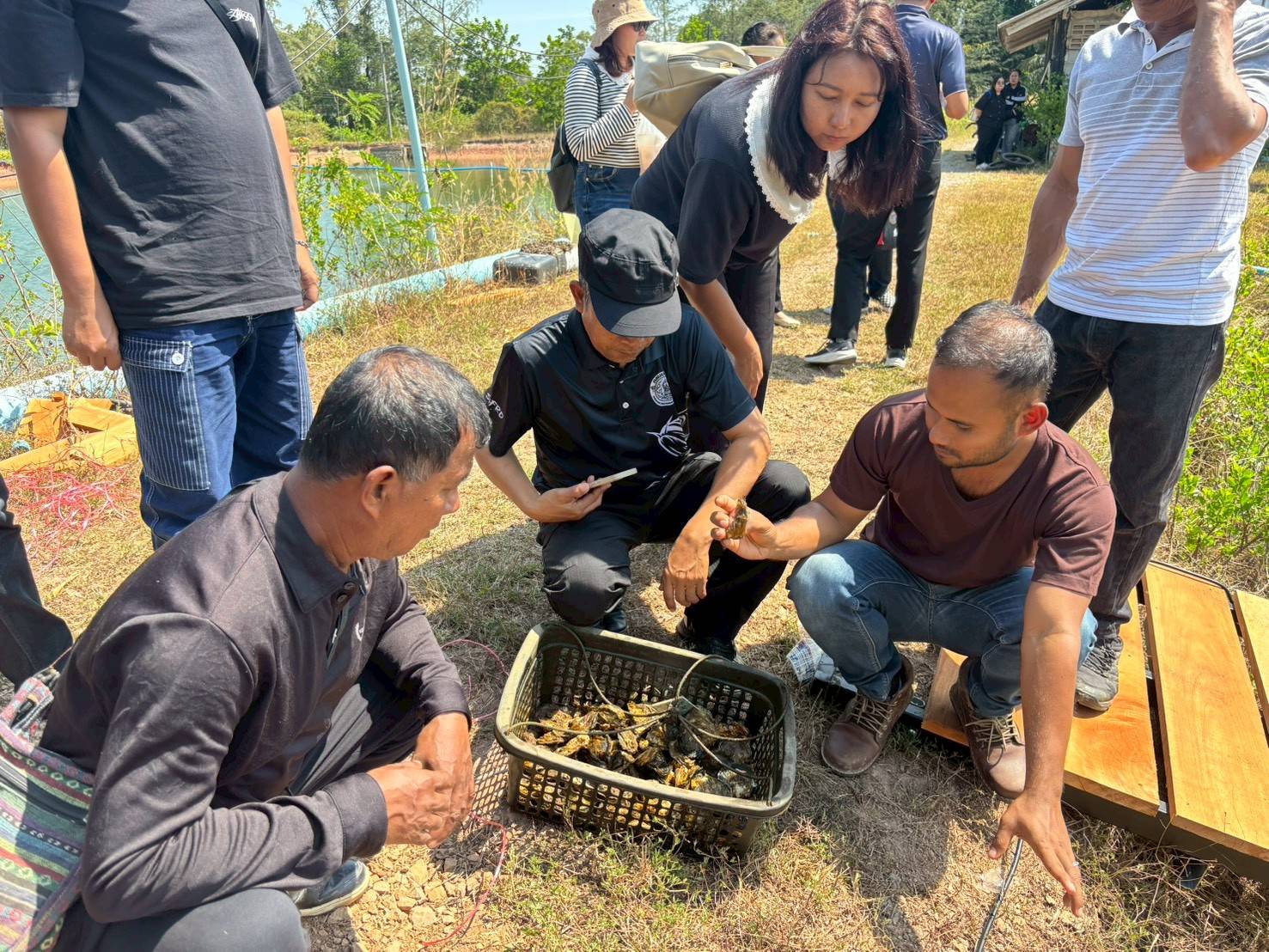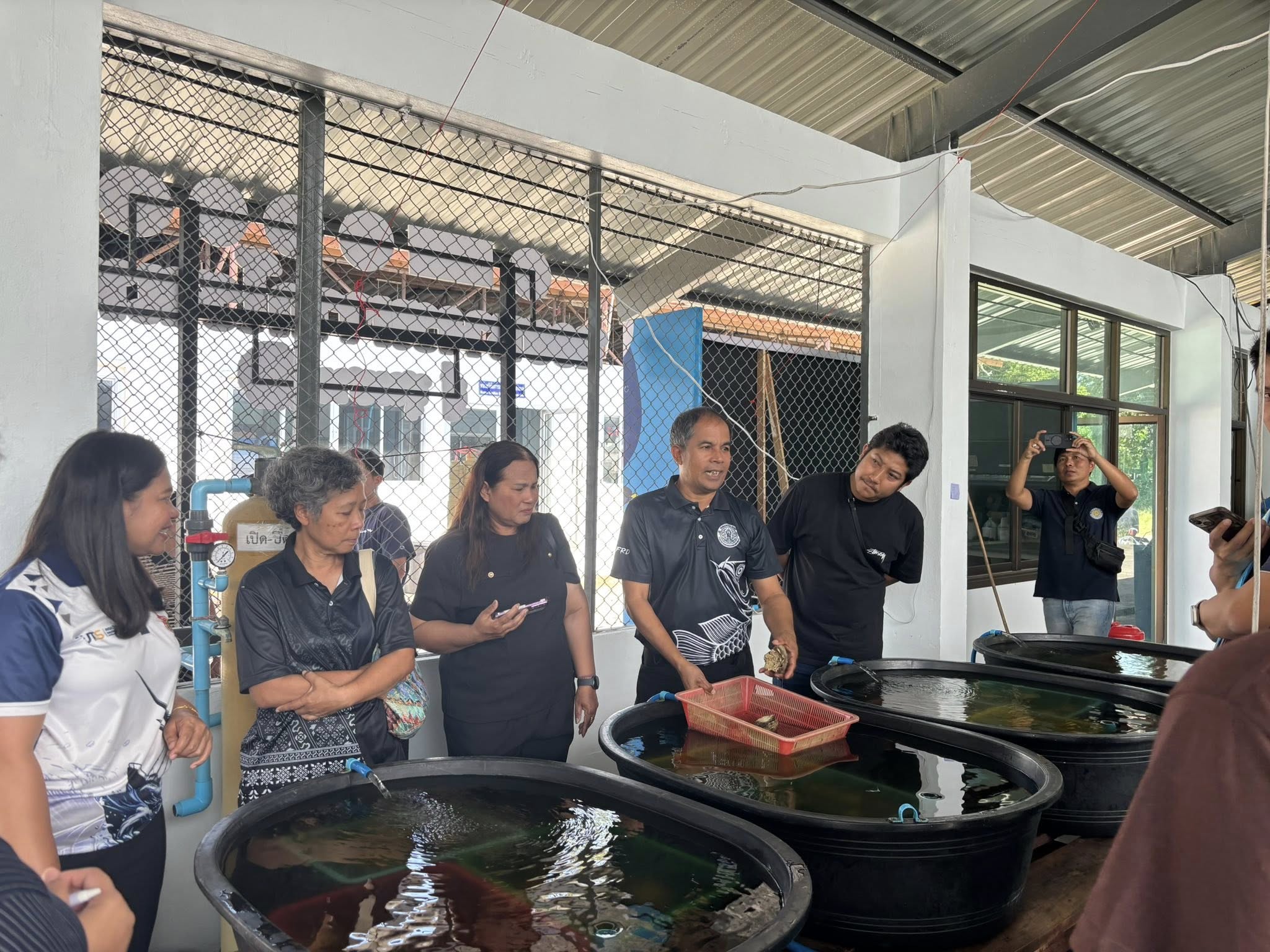 ในช่วงภาคบ่าย มีการพาผู้เข้าร่วมโครงการลงพื้นที่ศึกษาดูงาน ณ ฟาร์มตัวอย่างบ้านบางค้างคาว โดยได้รับความอนุเคราะห์จาก นายมานิต ภักดีย่อง และสมาชิกเกษตรกรผู้เลี้ยงหอยนางรม อำเภอสิเกา จังหวัดตรัง ร่วมถ่ายทอดประสบการณ์จริงด้านการบริหารจัดการฟาร์ม การลดต้นทุน และการเพิ่มผลผลิตจากเกษตรกรต้นแบบ