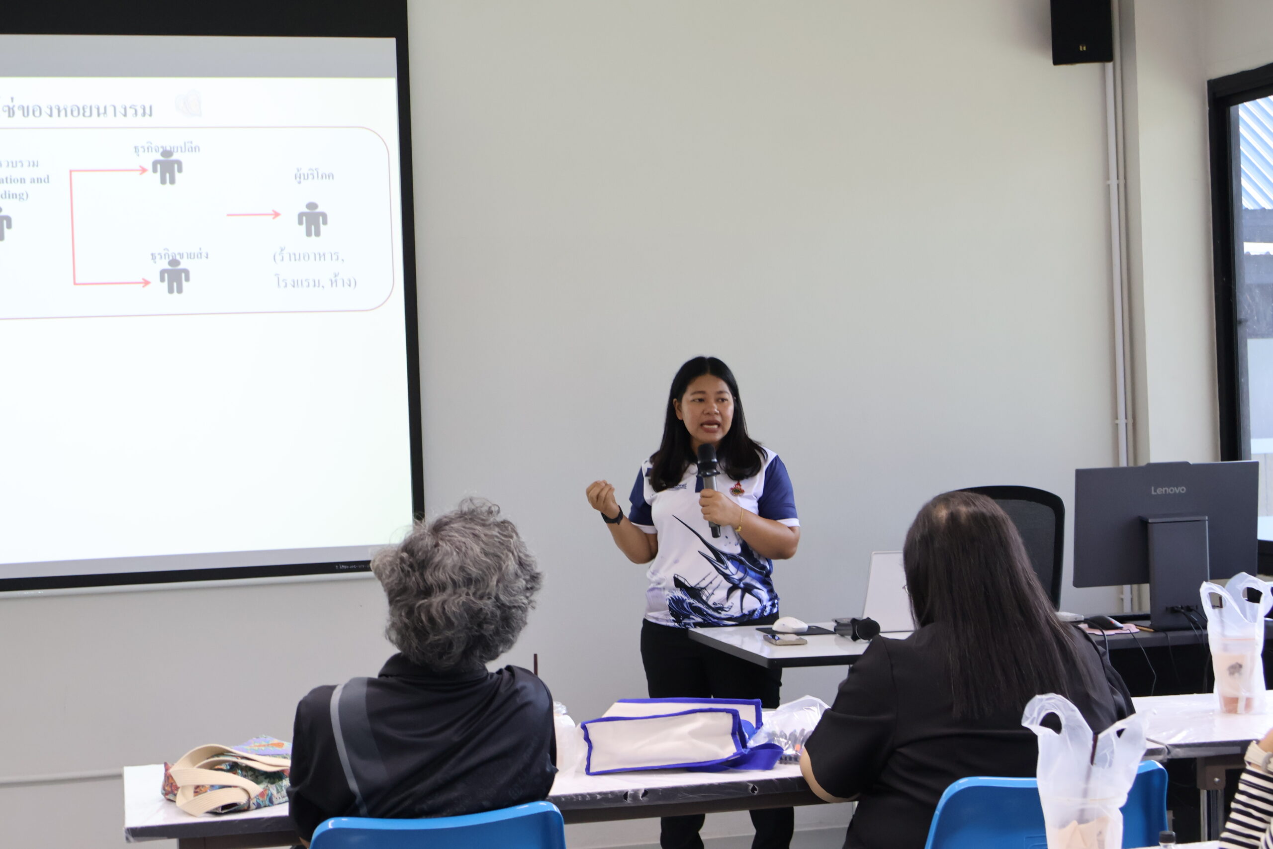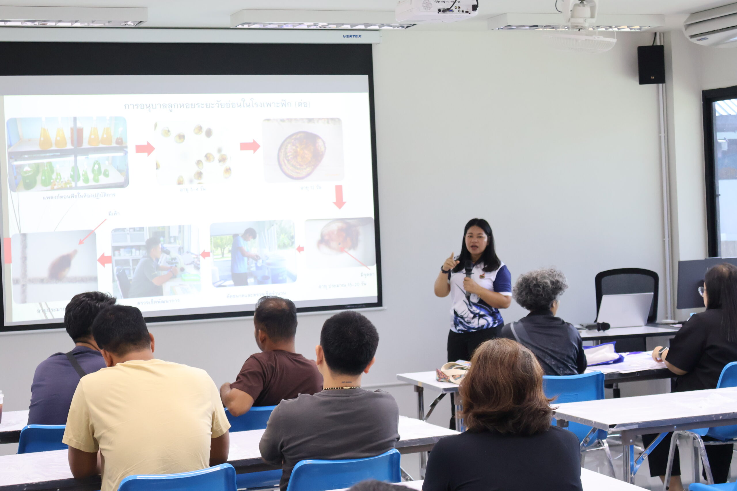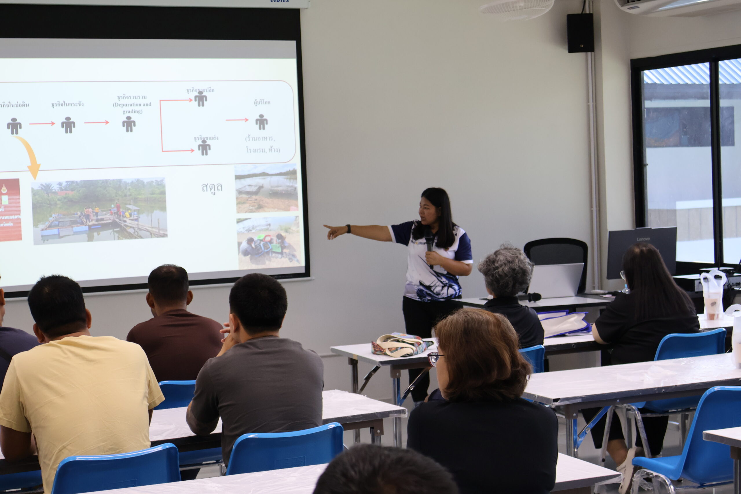 ภายในกิจกรรม ได้รับเกียรติจาก ผู้ช่วยศาสตราจารย์ ดร.สุพัชชา ชูเสียงแจ้ว อาจารย์ประจำสาขาวิชาเทคโนโลยีเพาะเลี้ยงสัตว์น้ำ เป็นวิทยากรถ่ายทอดองค์ความรู้ด้านการจัดการฟาร์ม การลดต้นทุน และการเพิ่มประสิทธิภาพผลผลิต ให้แก่ผู้เข้าร่วมอบรมจาก กลุ่มเกษตรกรแปลงใหญ่หอยนางรม อำเภอท่าฉาง จังหวัดสุราษฎร์ธานี พร้อมทั้งมีกิจกรรมภาคทฤษฎีและการแลกเปลี่ยนประสบการณ์ร่วมกันอย่างใกล้ชิด