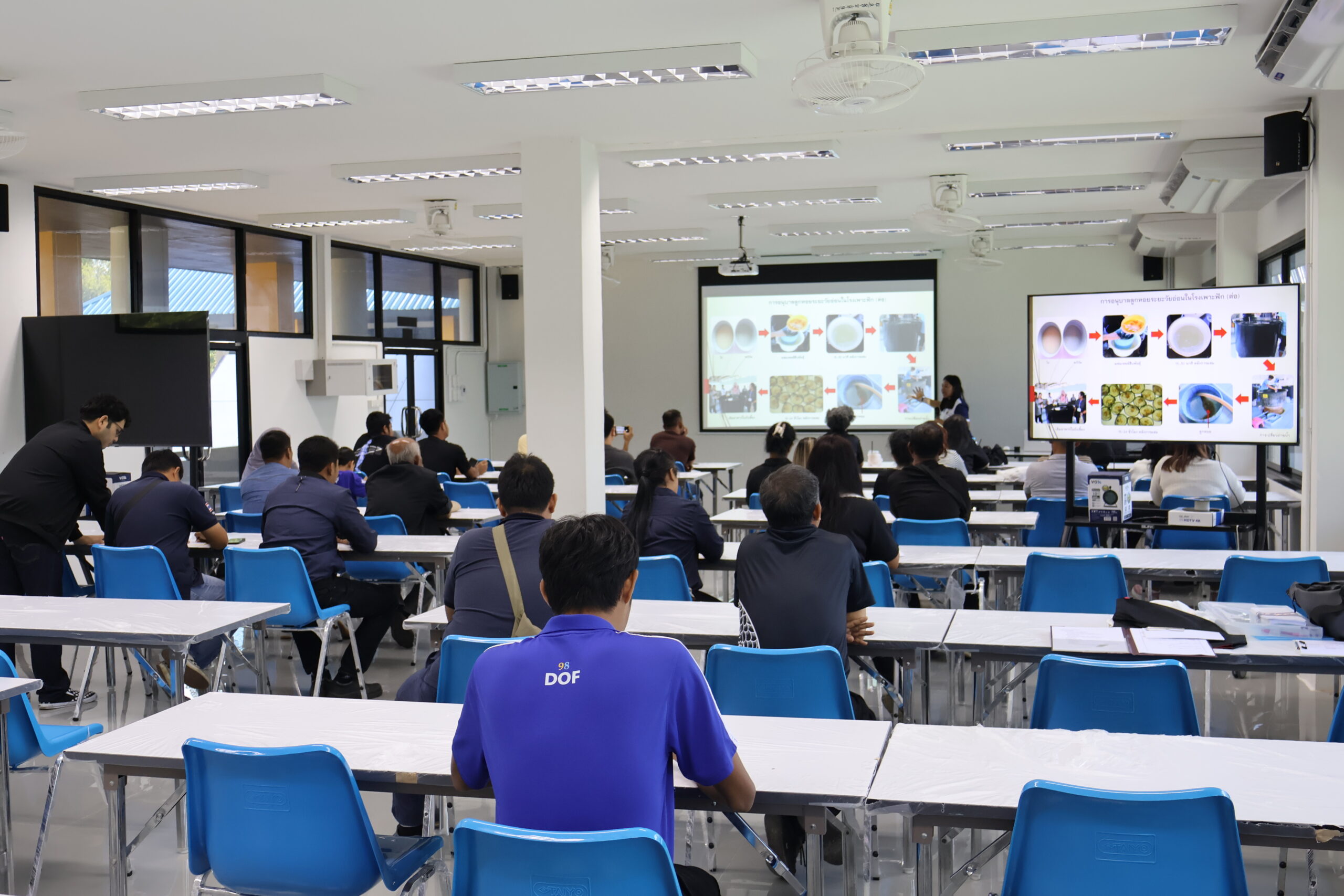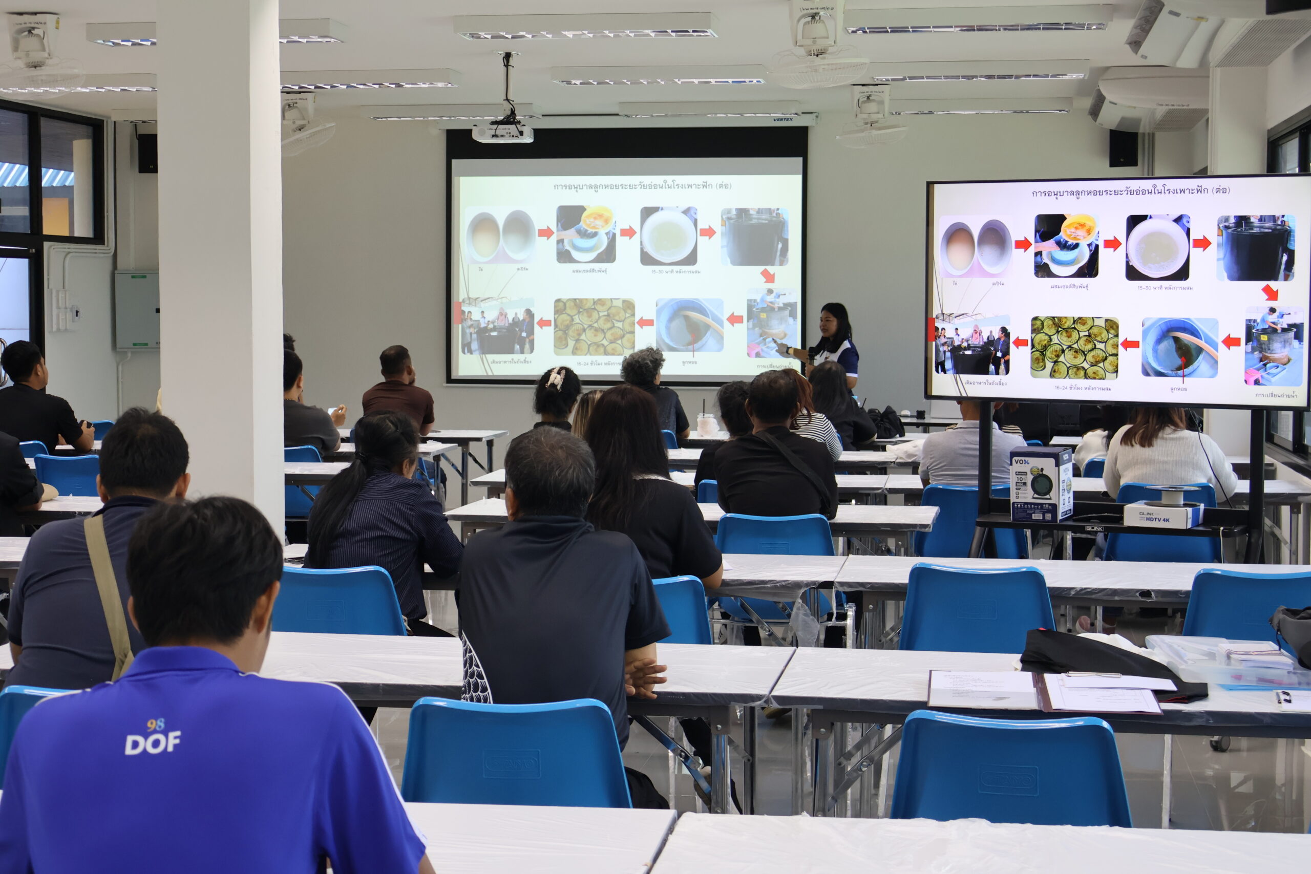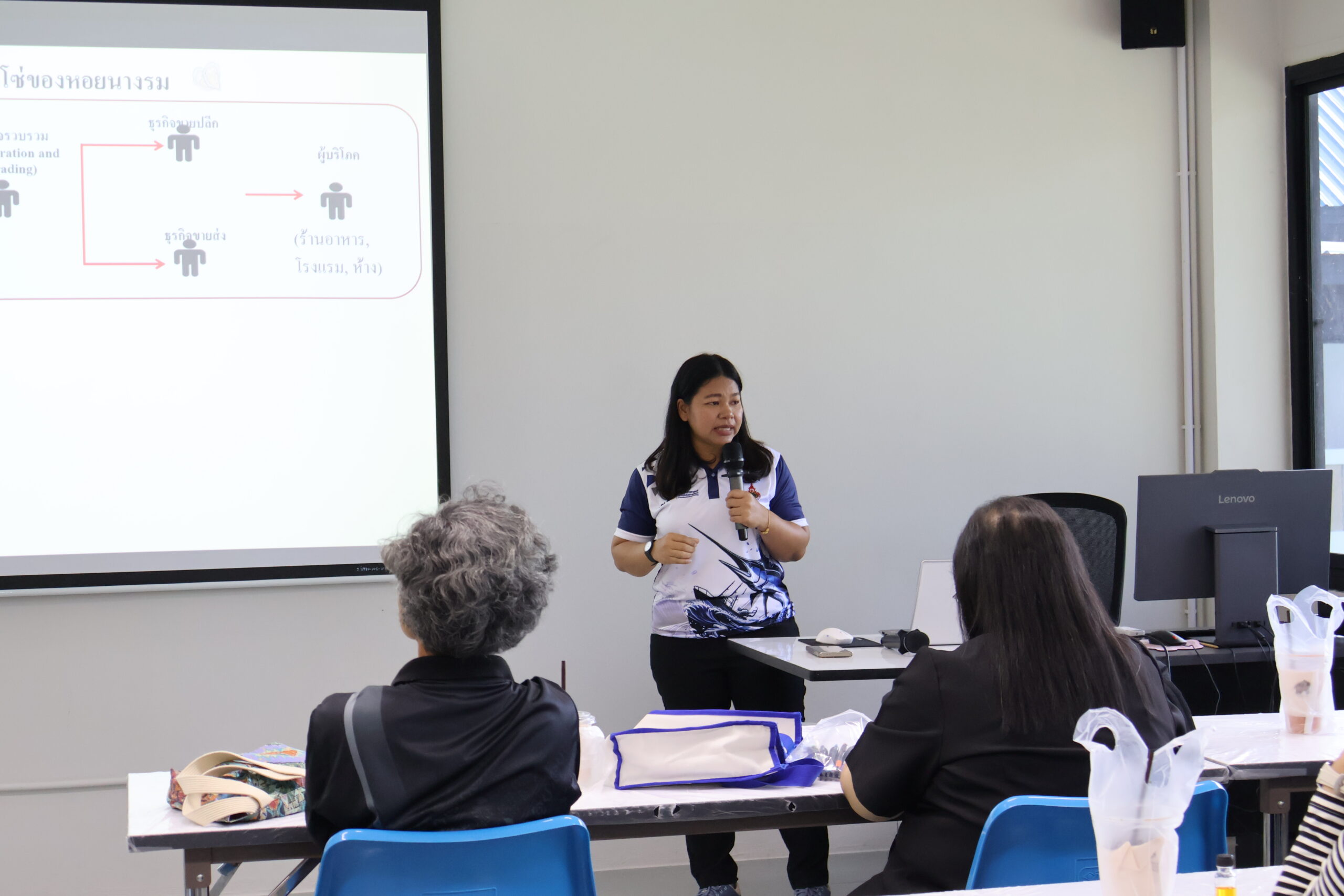 ภายในกิจกรรม ได้รับเกียรติจาก ผู้ช่วยศาสตราจารย์ ดร.สุพัชชา ชูเสียงแจ้ว อาจารย์ประจำสาขาวิชาเทคโนโลยีเพาะเลี้ยงสัตว์น้ำ เป็นวิทยากรถ่ายทอดองค์ความรู้ด้านการจัดการฟาร์ม การลดต้นทุน และการเพิ่มประสิทธิภาพผลผลิต ให้แก่ผู้เข้าร่วมอบรมจาก กลุ่มเกษตรกรแปลงใหญ่หอยนางรม อำเภอท่าฉาง จังหวัดสุราษฎร์ธานี พร้อมทั้งมีกิจกรรมภาคทฤษฎีและการแลกเปลี่ยนประสบการณ์ร่วมกันอย่างใกล้ชิด