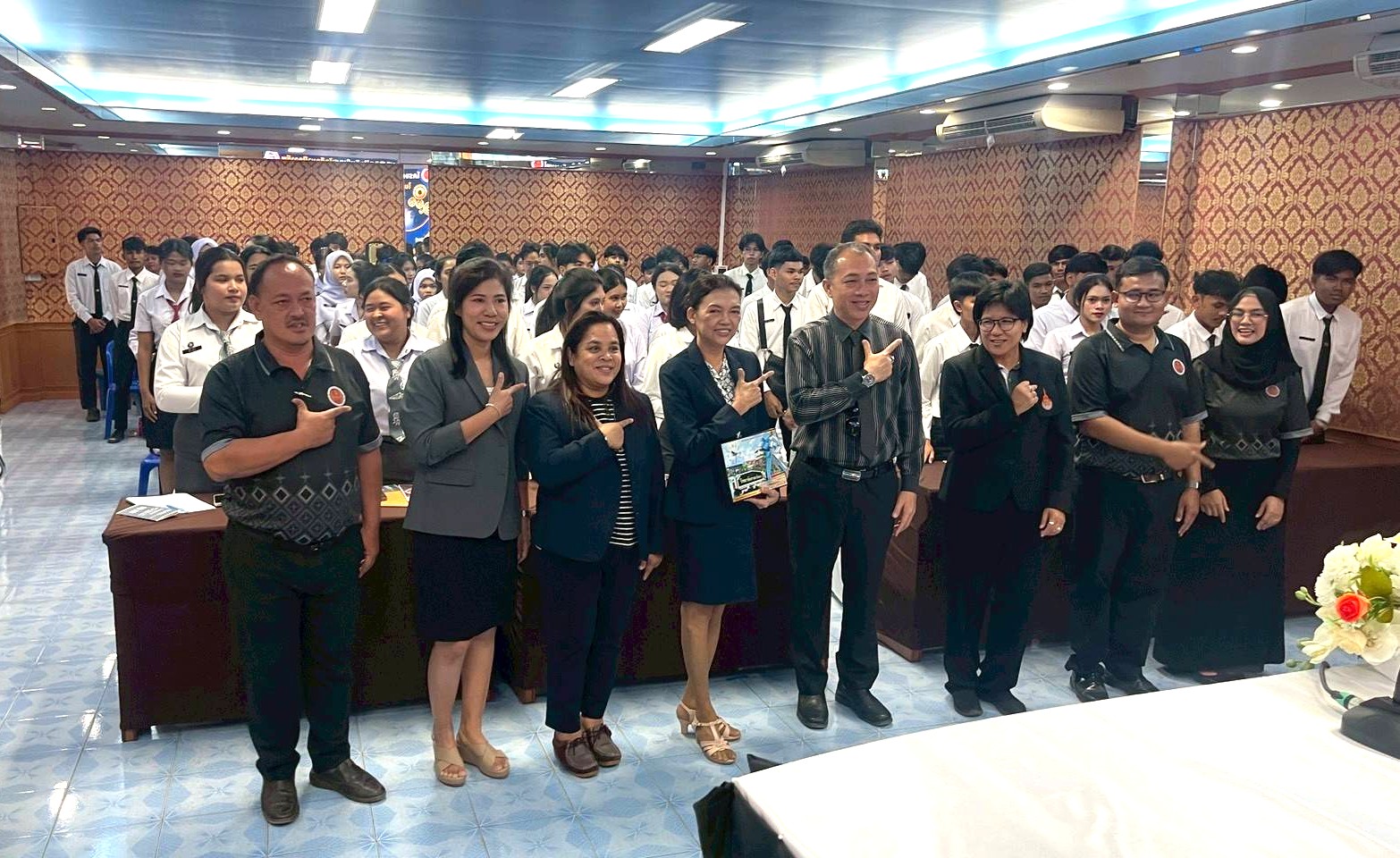 ผู้ช่วยศาสตราจารย์ ดร.นัฎฐา คเชนทร์ภักดี ประธานหลักสูตรวิทยาศาสตรบัณฑิตสาขาวิชาอุตสาหกรรมอาหารและผลิตภัณฑ์ประมง พร้อมด้วย คณาจารย์สาขาวิชาอุตสาหกรรมอาหารและผลิตภัณฑ์ประมง