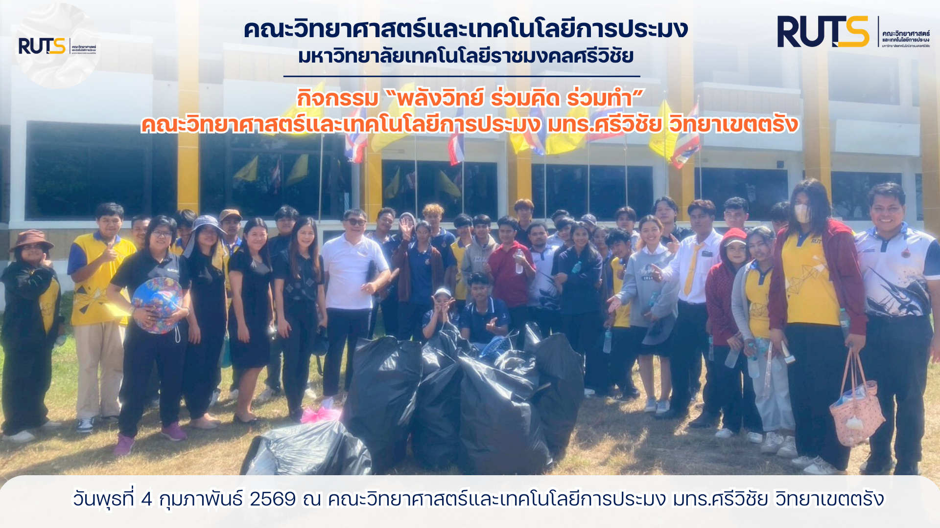 รองศาสตราจารย์ ดร.ชุตินุช สุจริต พร้อมด้วยคณะผู้รับผิดชอบกิจกรรม คณาจารย์ บุคลากร และนักศึกษา เข้าร่วมกิจกรรมอย่างพร้อมเพรียง ร่วมกันสะท้อนมุมมอง เสนอแนวคิด และกำหนดทิศทางการพัฒนาคณะให้ก้าวไปข้างหน้าอย่างมั่นคง กิจกรรมดังกล่าวจัดขึ้นเมื่อวันพุธที่ 4 กุมภาพันธ์ 2569 ณ สำนักงานคณบดี คณะวิทยาศาสตร์และเทคโนโลยีการประมง