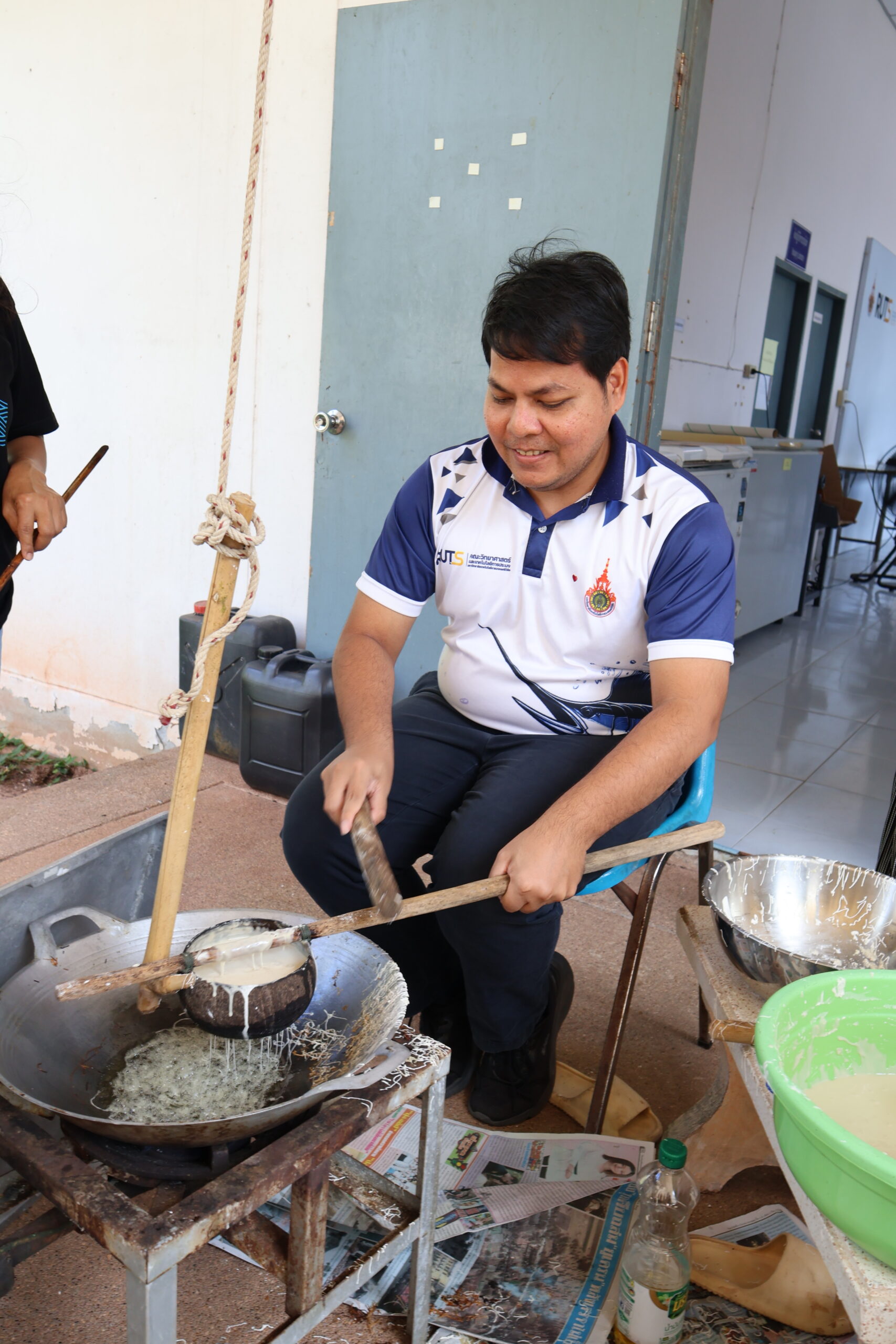 ภายในกิจกรรมมีนักศึกษา คณาจารย์ และบุคลากรคณะวิทยาศาสตร์และเทคโนโลยีการประมง เข้าร่วมเรียนรู้และลงมือปฏิบัติการทำ “ขนมลาโมเดิร์น” อย่างใกล้ชิด ท่ามกลางบรรยากาศแห่งการแลกเปลี่ยนความรู้ ความคิดสร้างสรรค์ และความภาคภูมิใจในภูมิปัญญาท้องถิ่นจาก นางนิพา ชัยพล เป็นผู้ถ่ายทอดความรู้