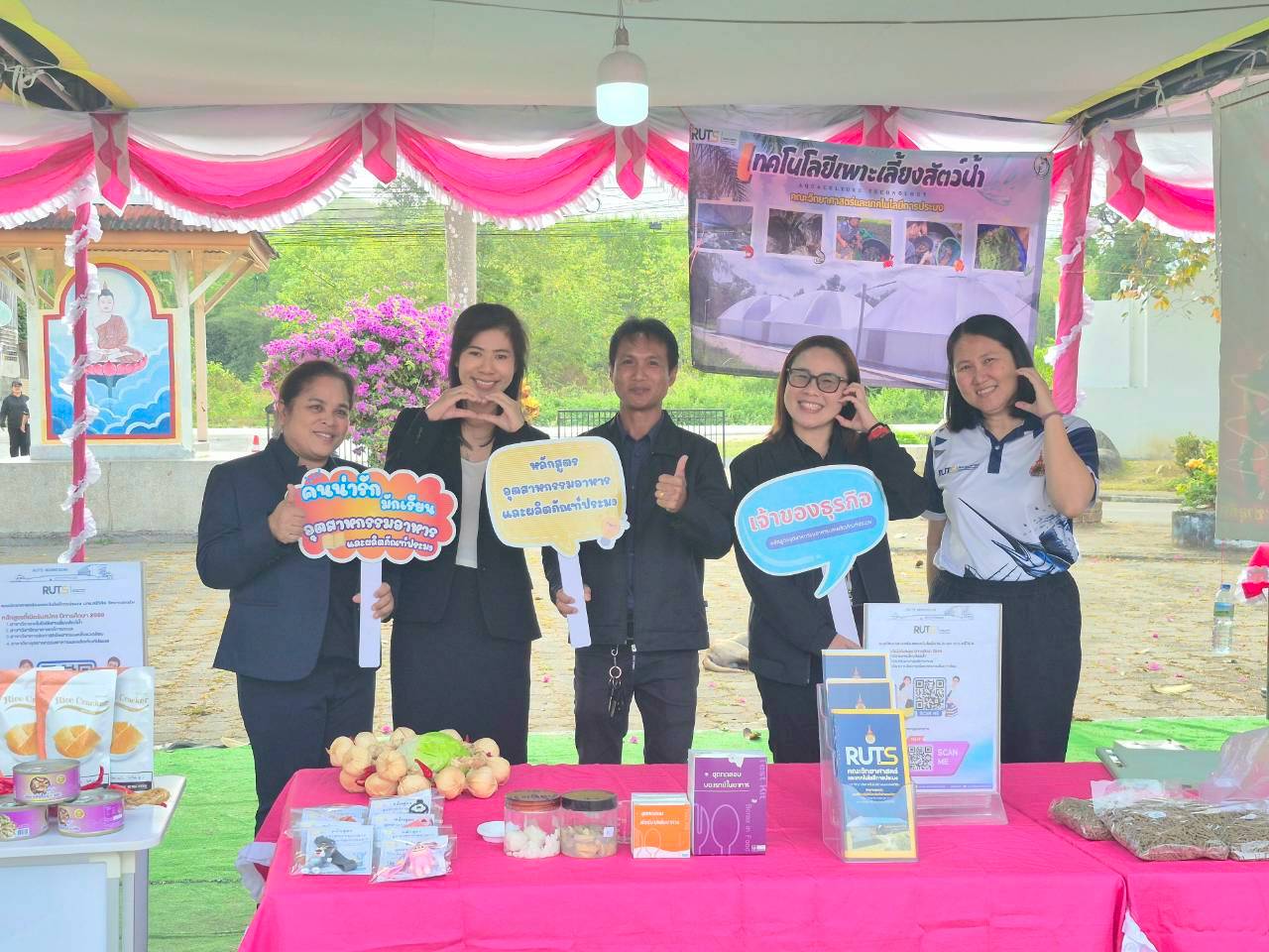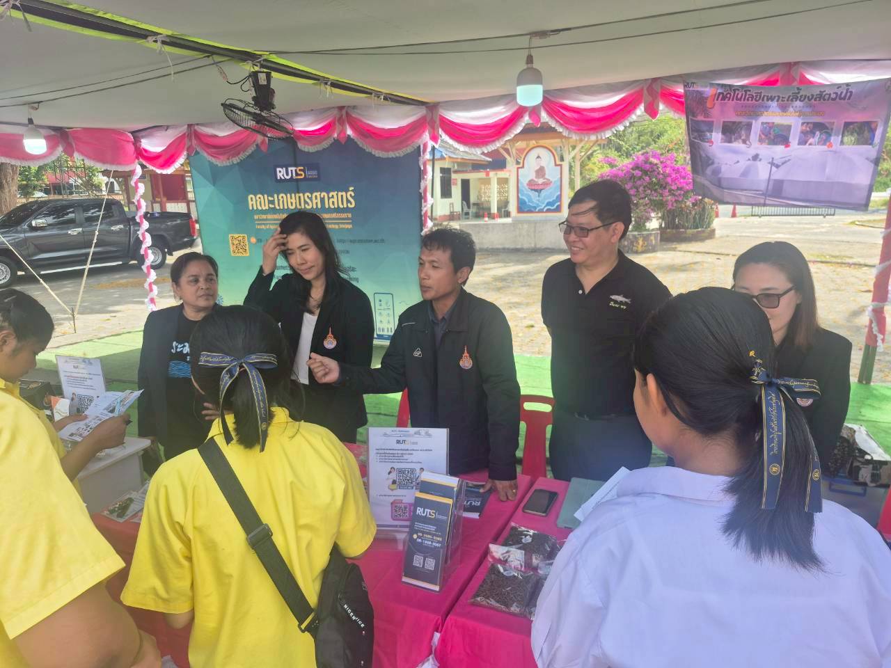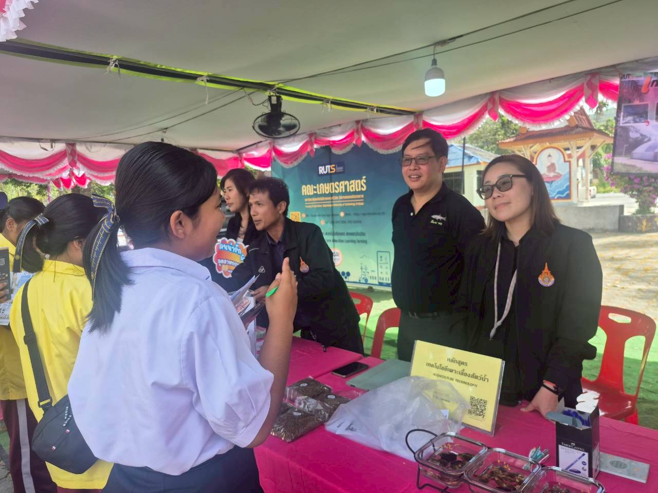 ผู้ช่วยศาสตราจารย์ ดร.นัฎฐา คเชนทร์ภักดี ประธานหลักสูตรวิทยาศาสตรบัณฑิต สาขาวิชาอุตสาหกรรมอาหารและผลิตภัณฑ์ประมง และผู้ช่วยศาสตราจารย์เอนก สาวะอินทร์ ประธานหลักสูตรการจัดการทรัพยากรและสิ่งแวดล้อม พร้อมด้วยคณาจารย์และนักวิทยาศาสตร์ คณะวิทยาศาสตร์และเทคโนโลยีการประมง