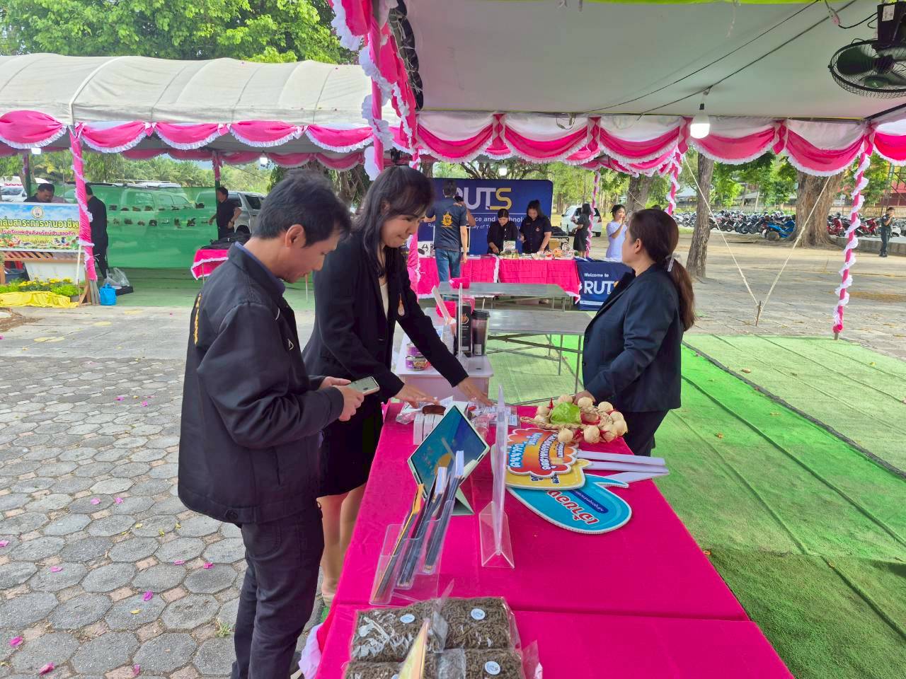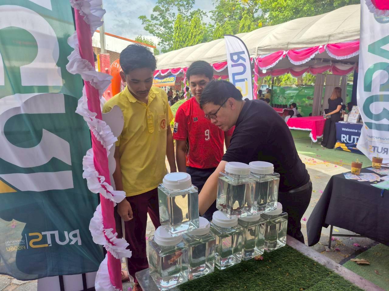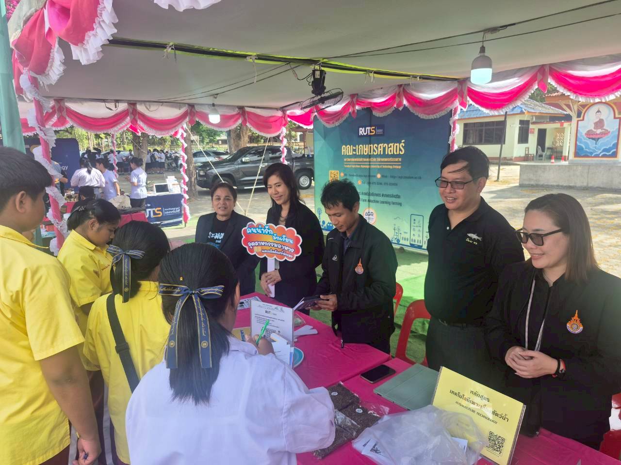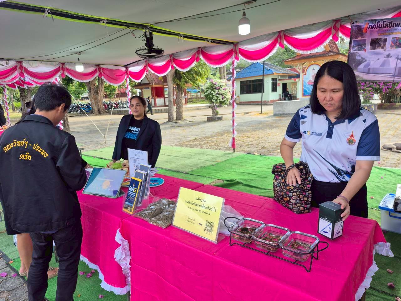 ผู้ช่วยศาสตราจารย์ ดร.นัฎฐา คเชนทร์ภักดี ประธานหลักสูตรวิทยาศาสตรบัณฑิต สาขาวิชาอุตสาหกรรมอาหารและผลิตภัณฑ์ประมง และผู้ช่วยศาสตราจารย์เอนก สาวะอินทร์ ประธานหลักสูตรการจัดการทรัพยากรและสิ่งแวดล้อม พร้อมด้วยคณาจารย์และนักวิทยาศาสตร์ คณะวิทยาศาสตร์และเทคโนโลยีการประมง