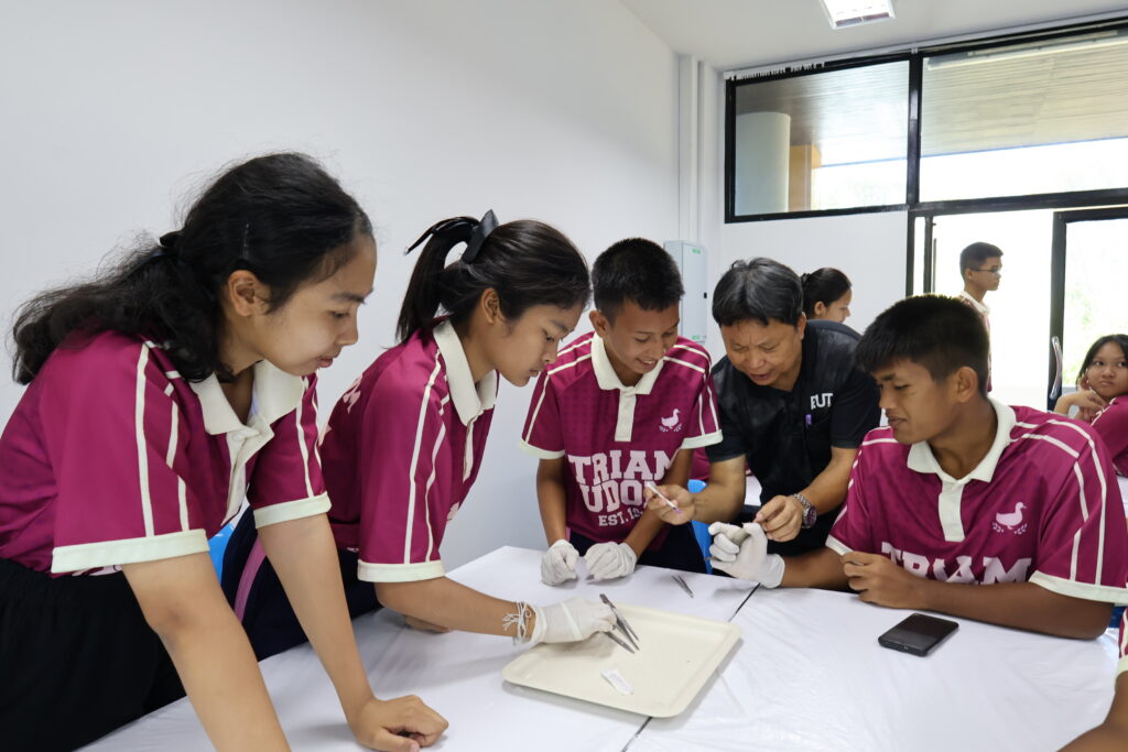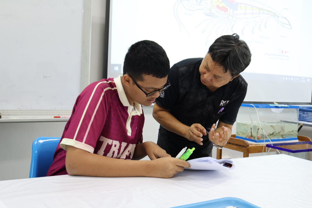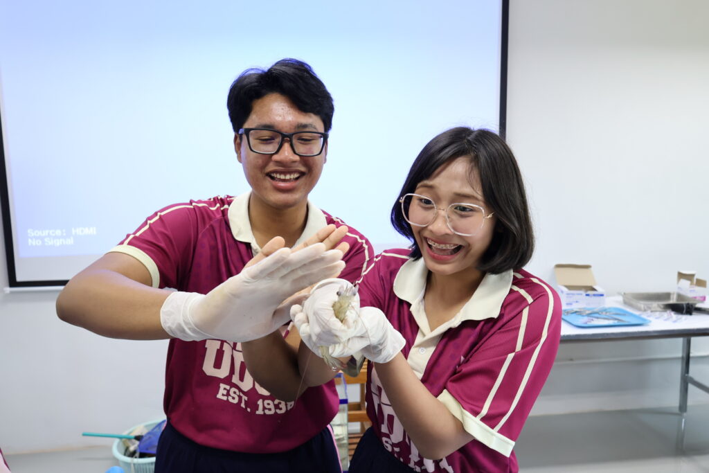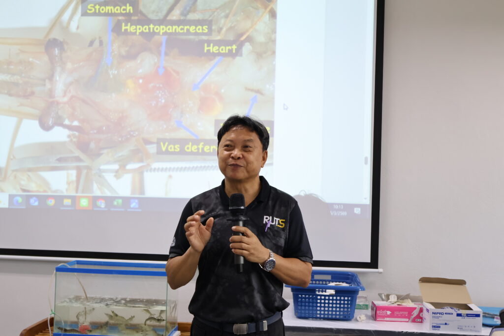 ภายในกิจกรรมได้รับเกียรติจาก รองศาสตราจารย์วัฒนา วัฒนกุล และ ผู้ช่วยศาสตราจารย์อุไรวรรณ วัฒนกุล ร่วมเป็นวิทยากรถ่ายทอดความรู้ พร้อมนำกิจกรรม “สรีระของกุ้ง” ให้น้อง ๆ ได้เรียนรู้โครงสร้างและระบบต่าง ๆ ของกุ้ง ผ่านการลงมือปฏิบัติจริง สร้างความเข้าใจและความสนุกไปพร้อมกับการเรียนรู้ จัดขึ้นเมื่อวันพฤหัสบดีที่ 5 มีนาคม 2569 ณ ห้อง SF201 คณะวิทยาศาสตร์และเทคโนโลยีการประมง มทร.ศรีวิชัย วิทยาเขตตรัง