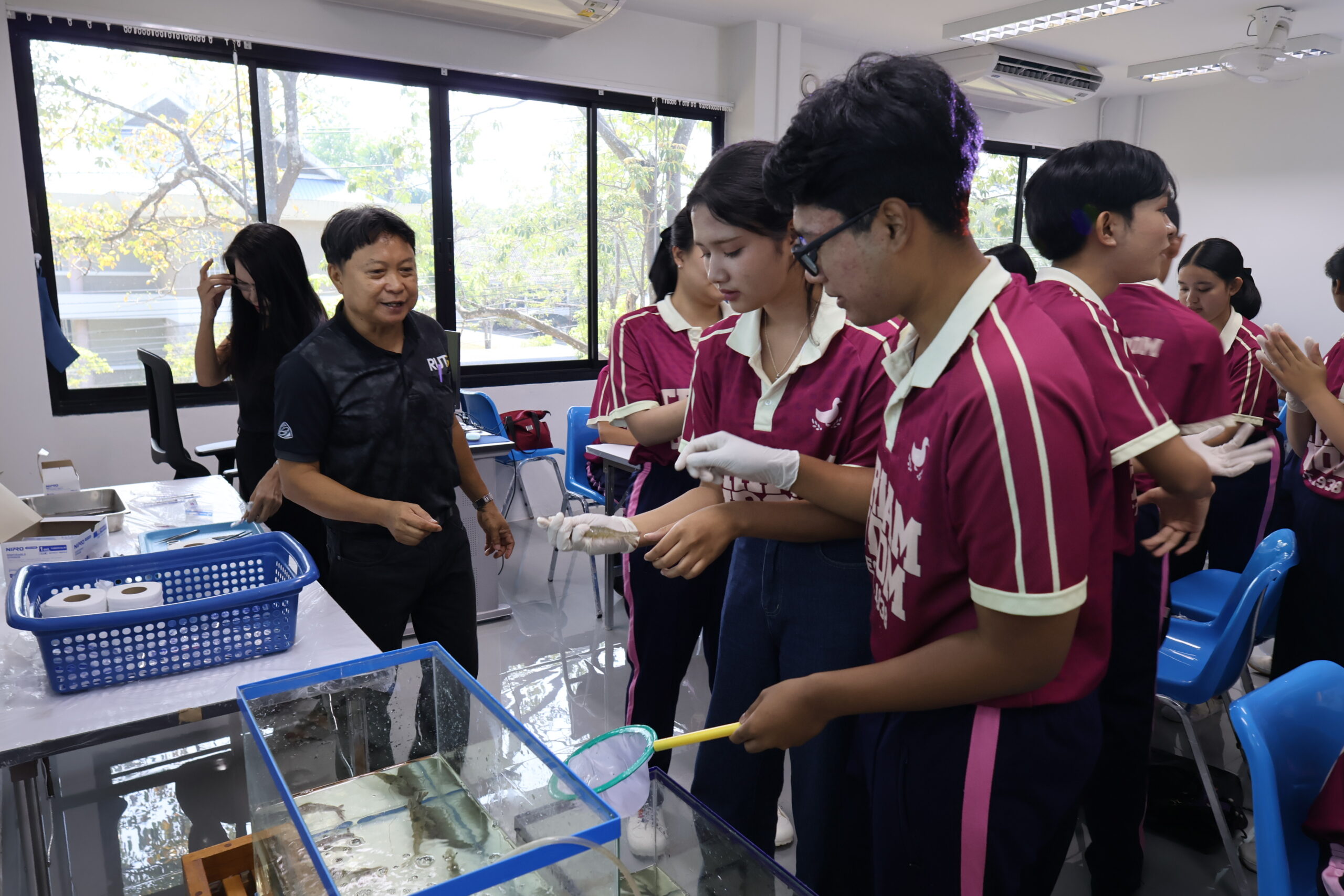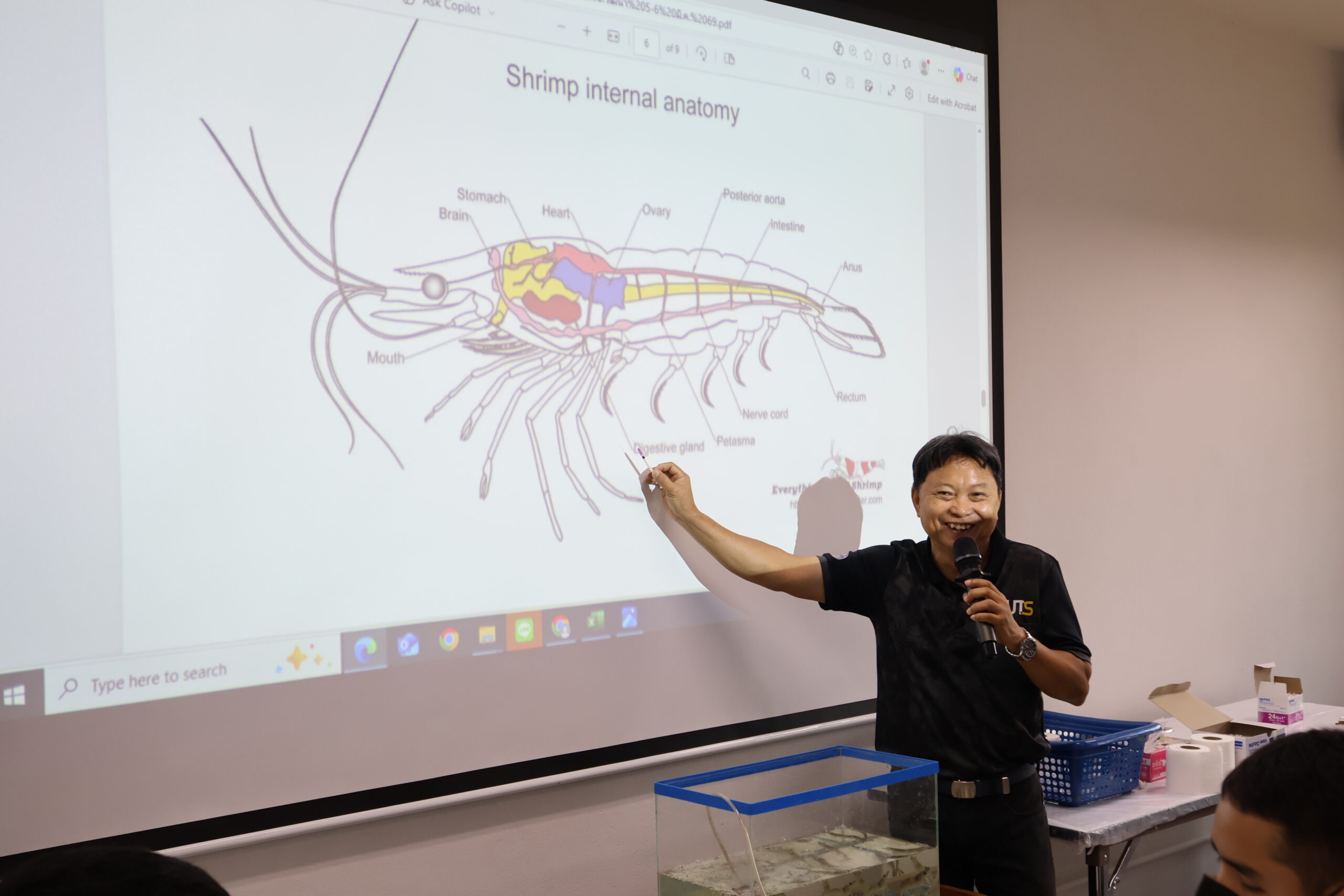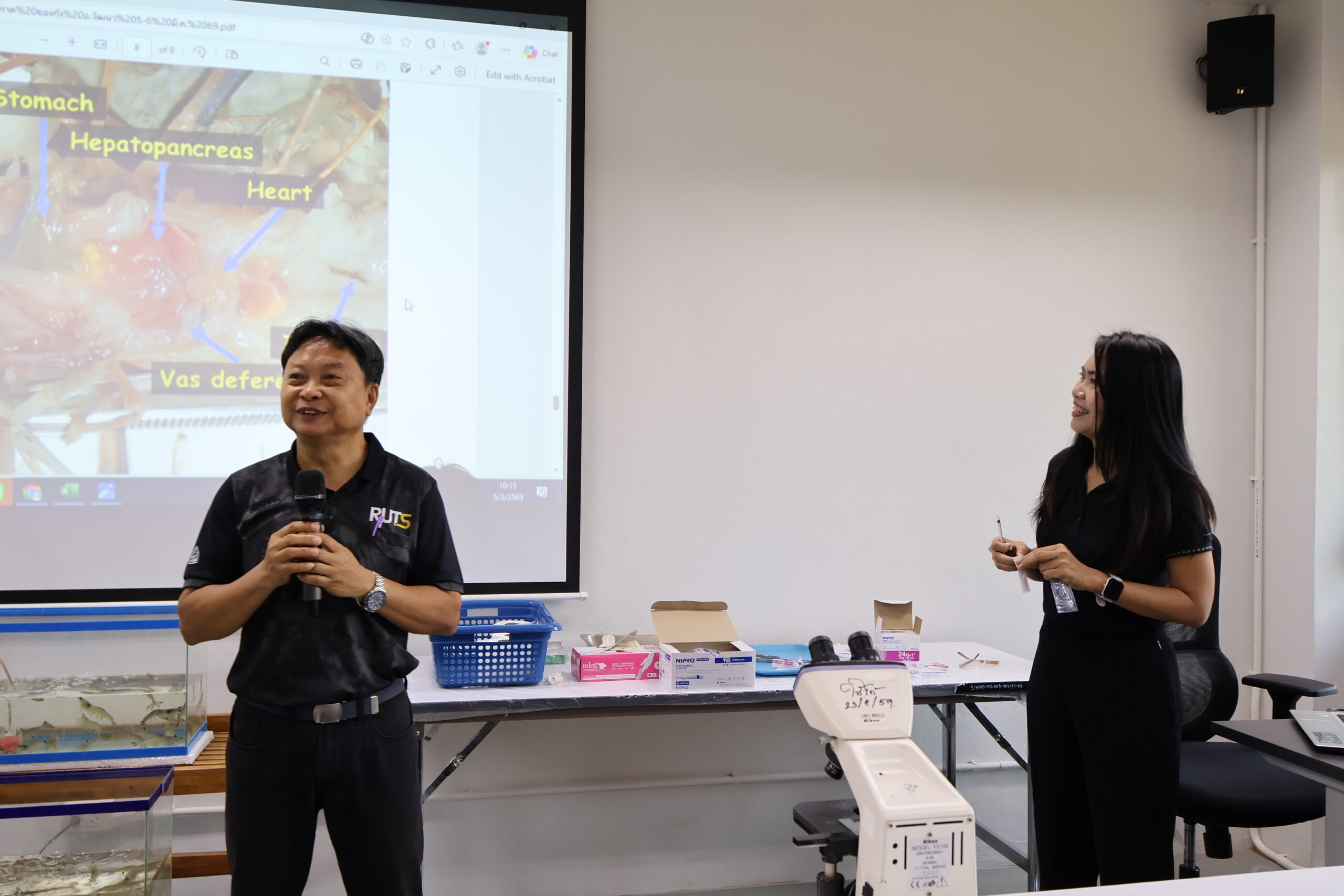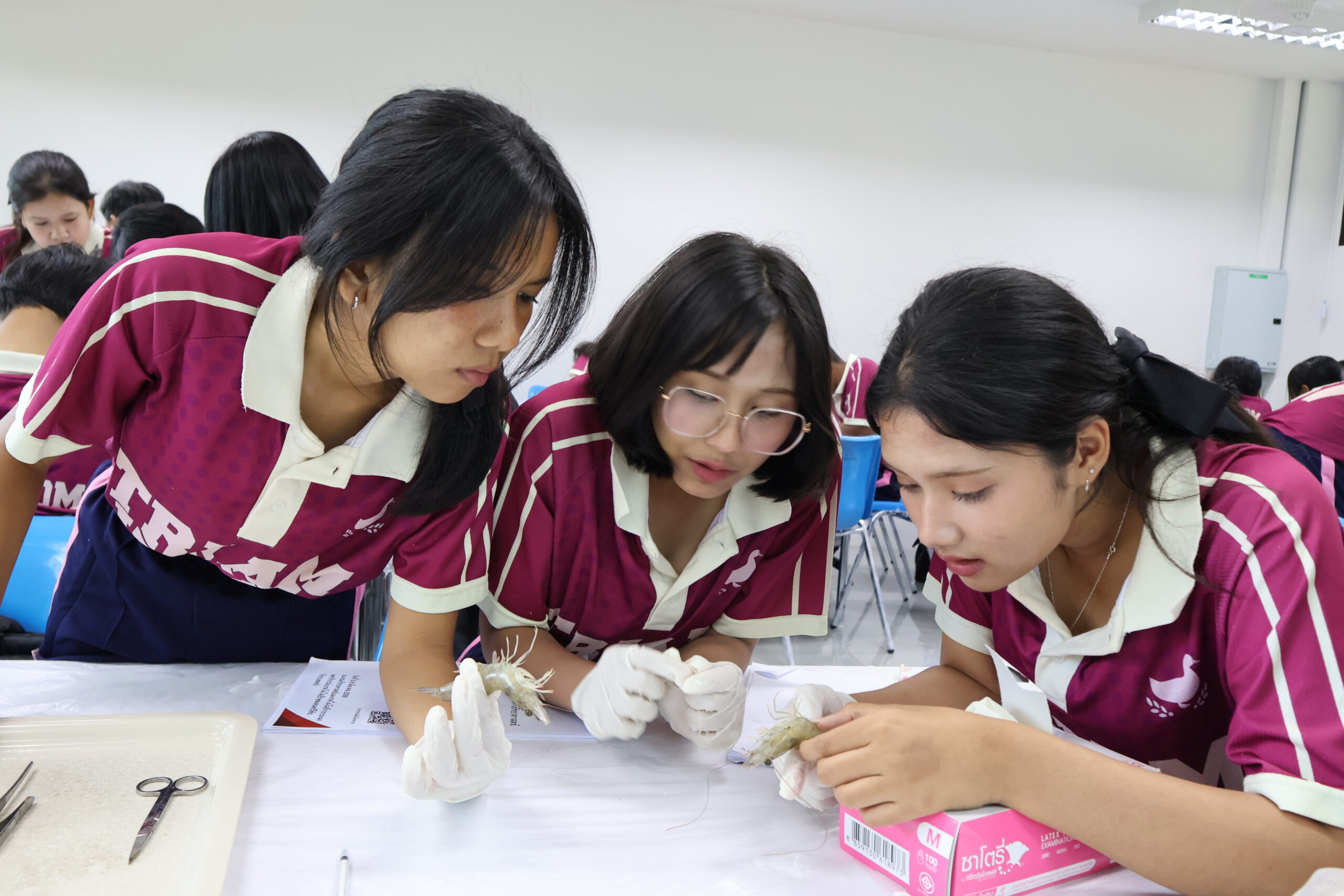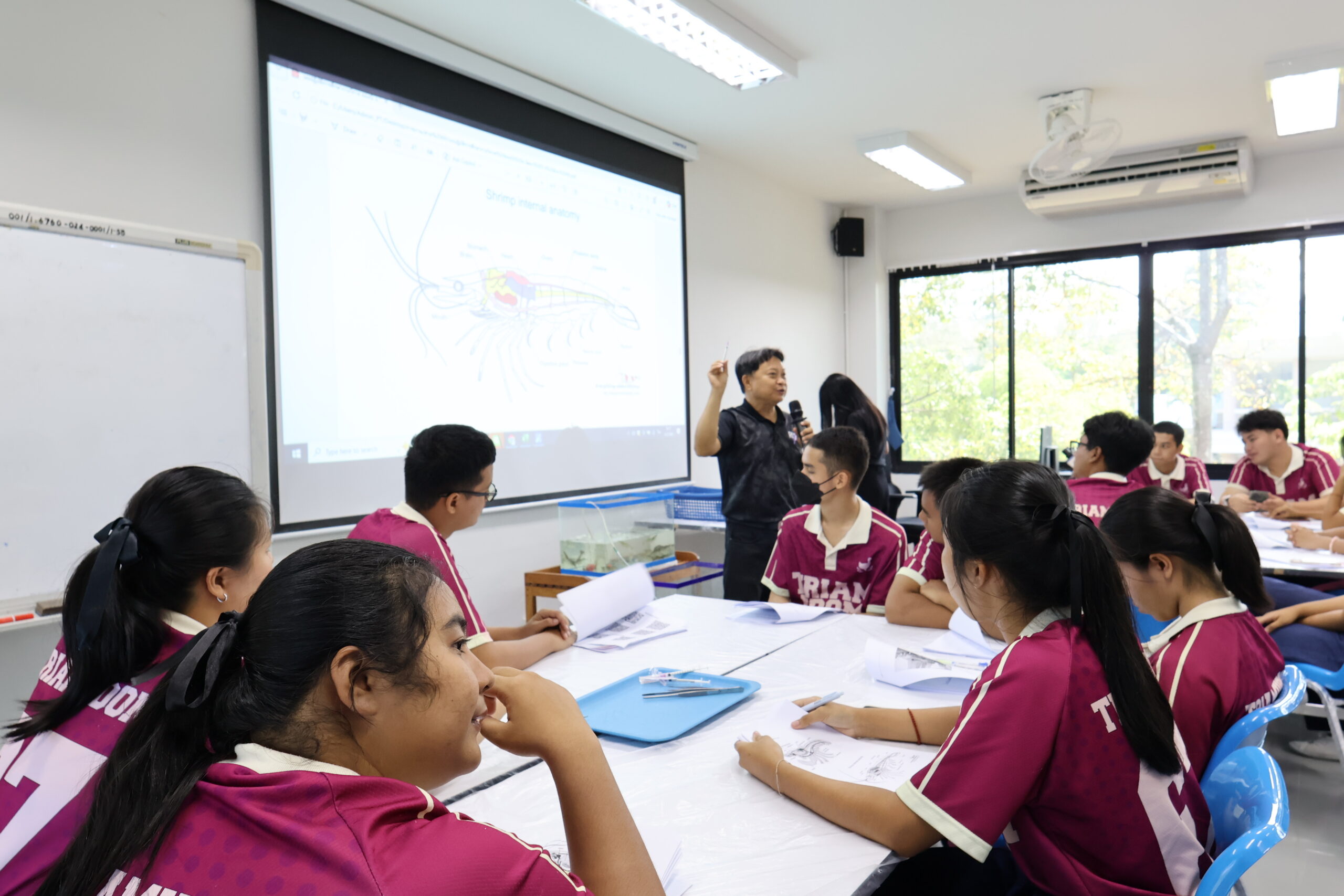 ภายในกิจกรรมได้รับเกียรติจาก รองศาสตราจารย์วัฒนา วัฒนกุล และ ผู้ช่วยศาสตราจารย์อุไรวรรณ วัฒนกุล ร่วมเป็นวิทยากรถ่ายทอดความรู้ พร้อมนำกิจกรรม “สรีระของกุ้ง” ให้น้อง ๆ ได้เรียนรู้โครงสร้างและระบบต่าง ๆ ของกุ้ง ผ่านการลงมือปฏิบัติจริง สร้างความเข้าใจและความสนุกไปพร้อมกับการเรียนรู้ จัดขึ้นเมื่อวันพฤหัสบดีที่ 5 มีนาคม 2569 ณ ห้อง SF201 คณะวิทยาศาสตร์และเทคโนโลยีการประมง มทร.ศรีวิชัย วิทยาเขตตรัง