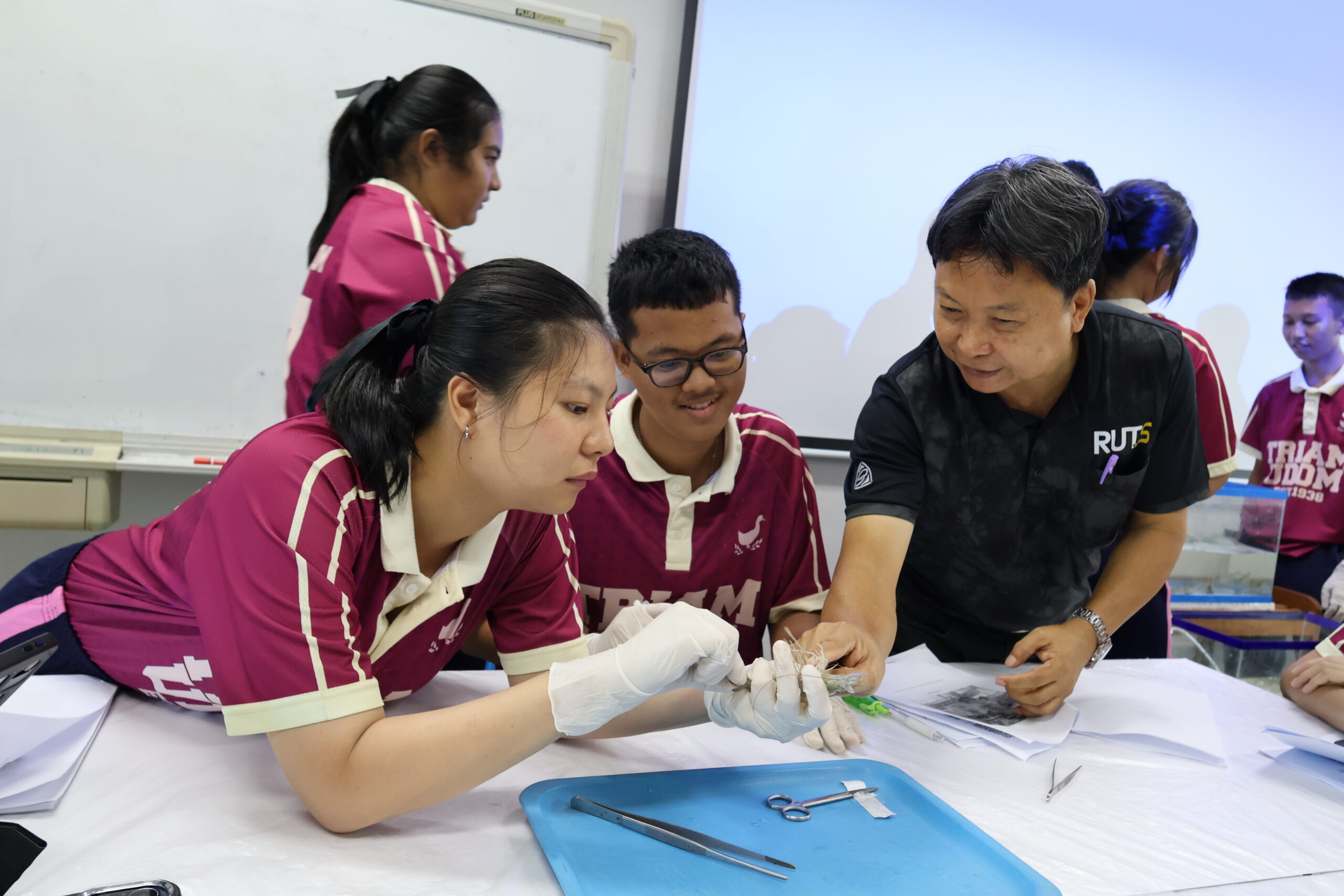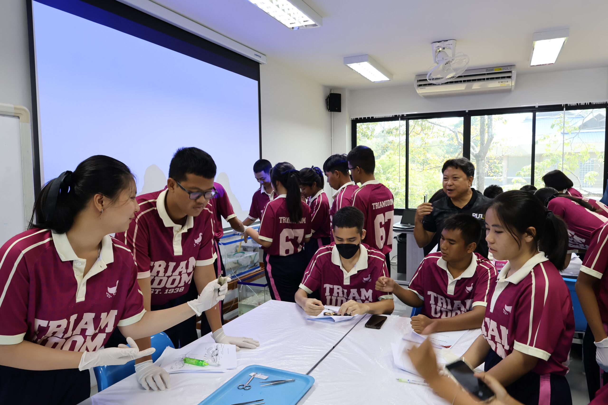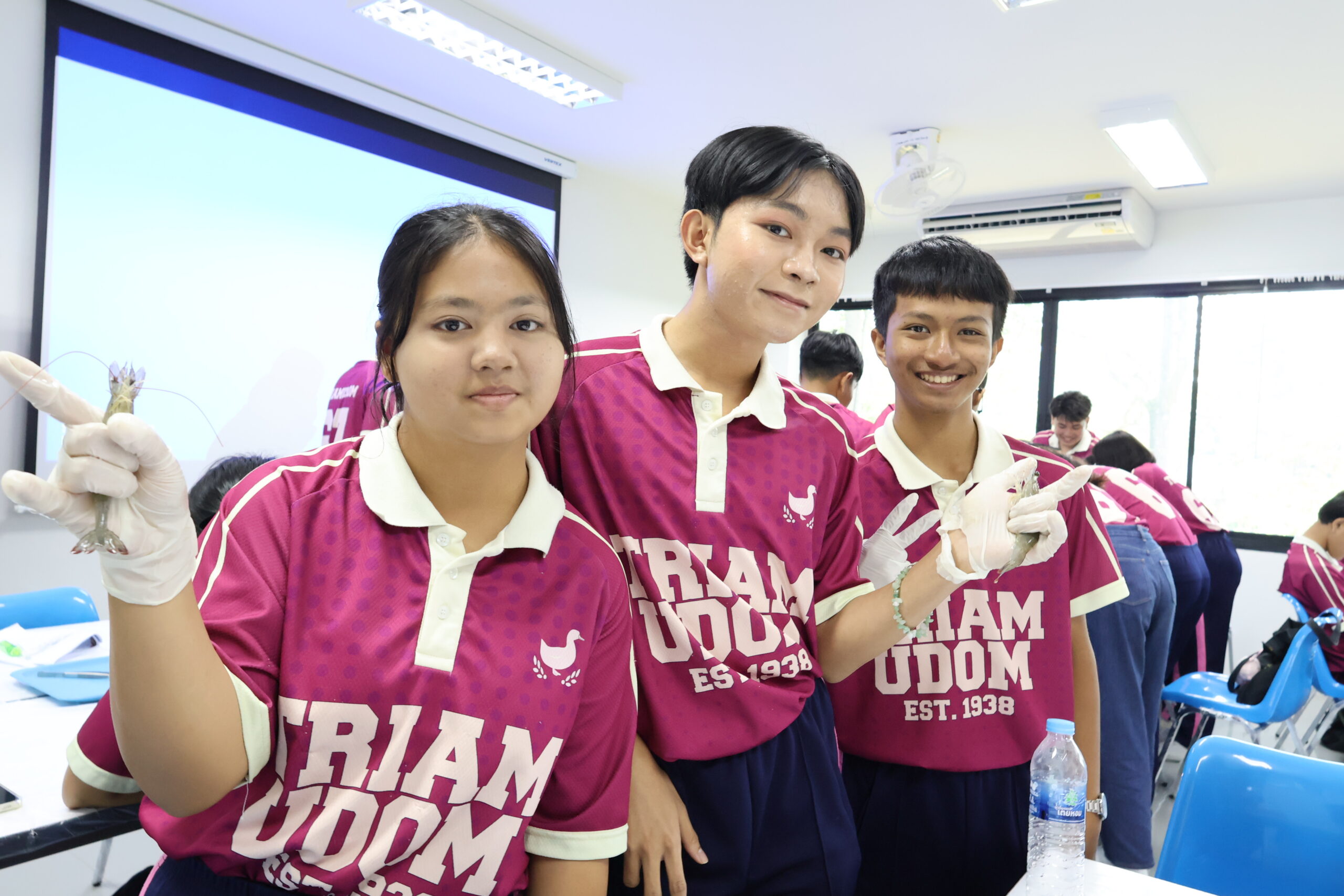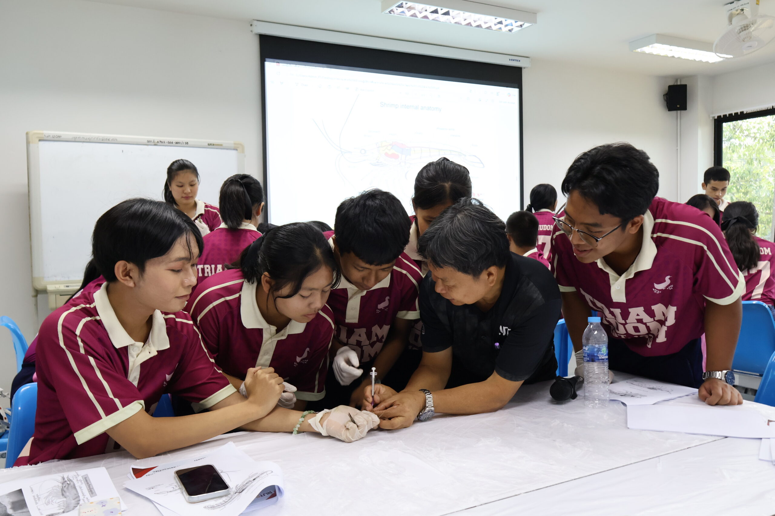ภายในกิจกรรมได้รับเกียรติจาก รองศาสตราจารย์วัฒนา วัฒนกุล และ ผู้ช่วยศาสตราจารย์อุไรวรรณ วัฒนกุล ร่วมเป็นวิทยากรถ่ายทอดความรู้ พร้อมนำกิจกรรม “สรีระของกุ้ง” ให้น้อง ๆ ได้เรียนรู้โครงสร้างและระบบต่าง ๆ ของกุ้ง ผ่านการลงมือปฏิบัติจริง สร้างความเข้าใจและความสนุกไปพร้อมกับการเรียนรู้ จัดขึ้นเมื่อวันพฤหัสบดีที่ 5 มีนาคม 2569 ณ ห้อง SF201 คณะวิทยาศาสตร์และเทคโนโลยีการประมง มทร.ศรีวิชัย วิทยาเขตตรัง
