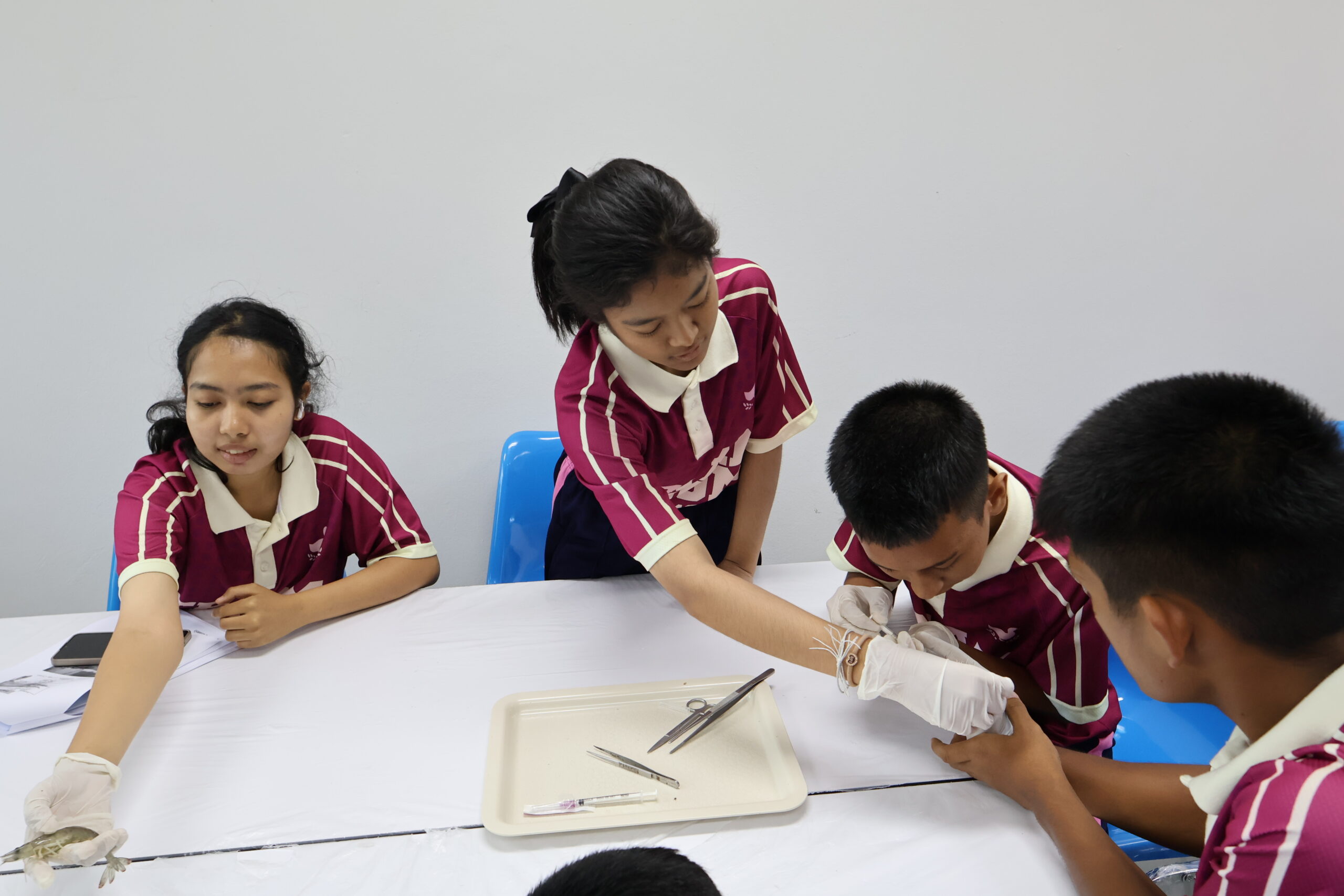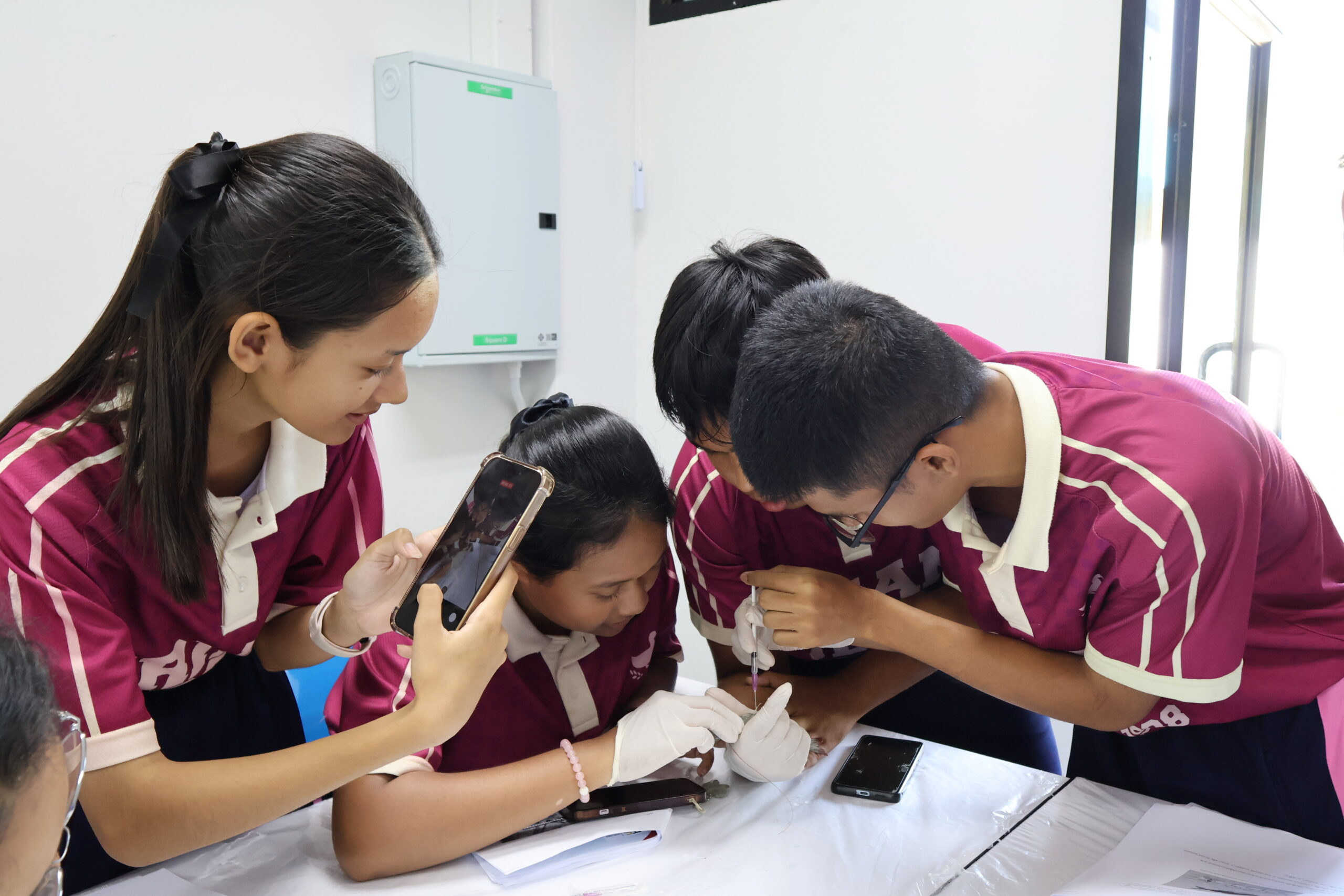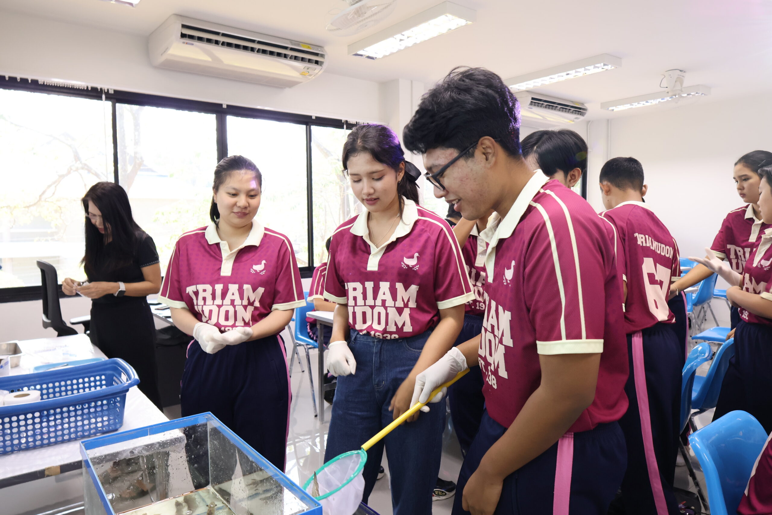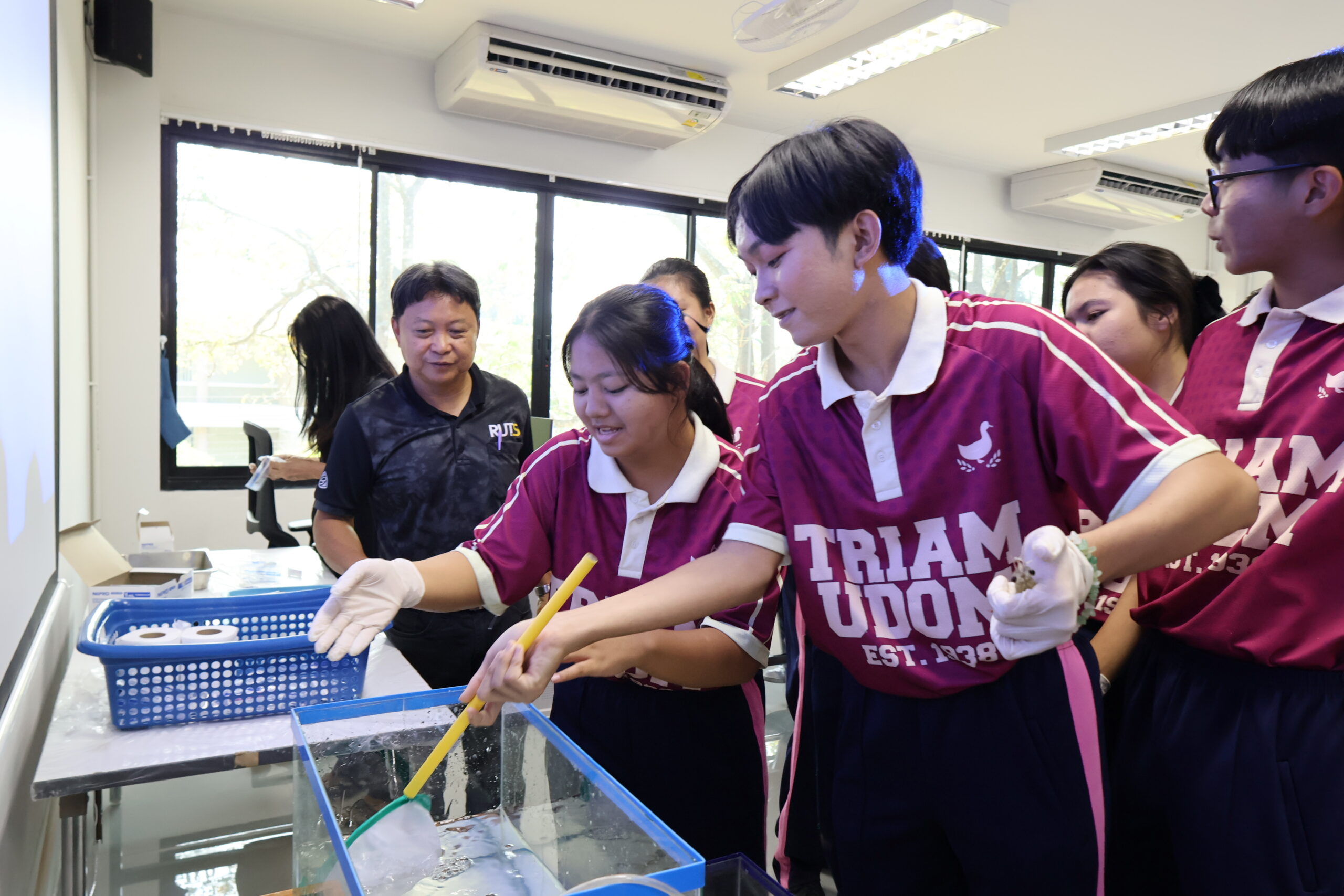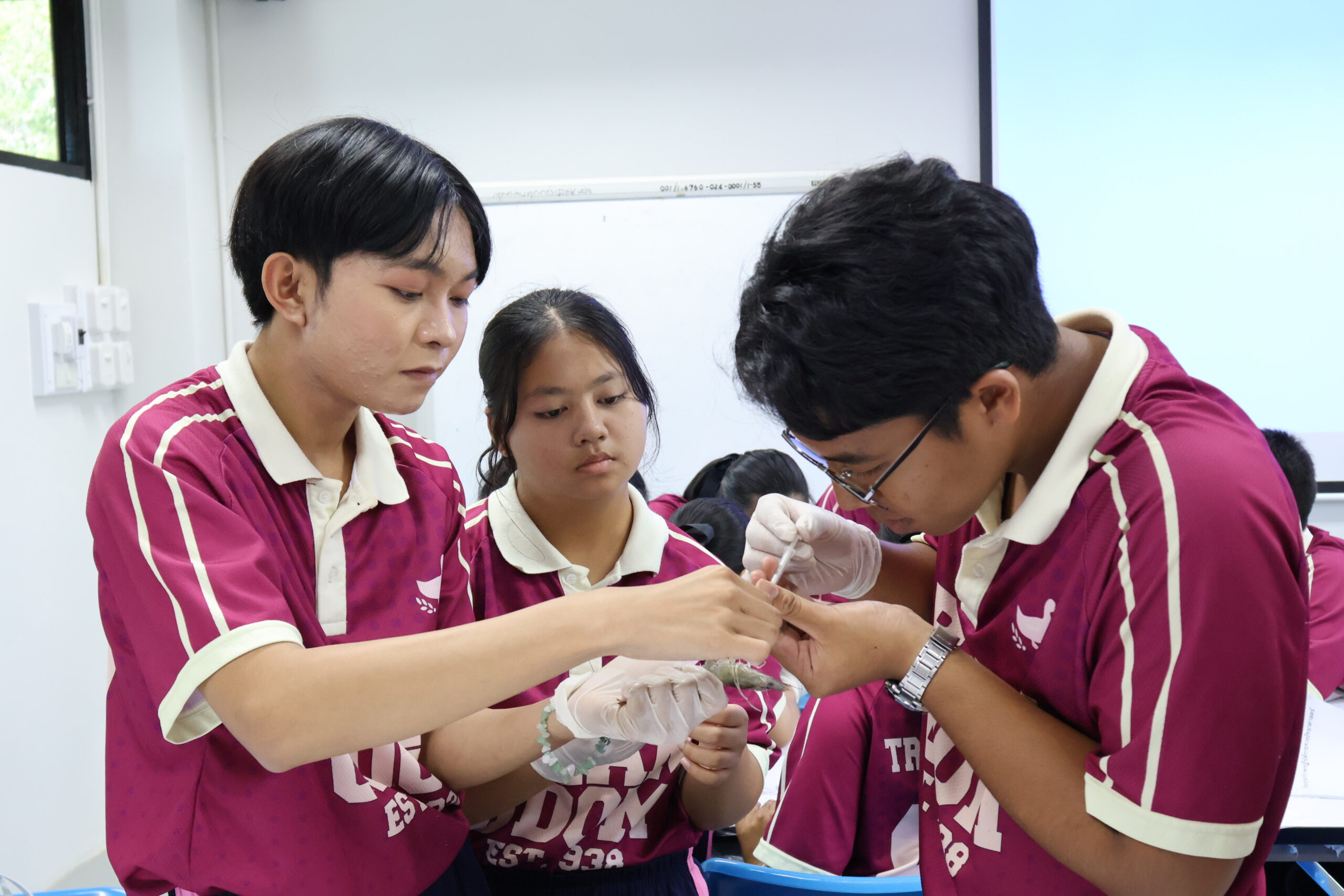 ภายในกิจกรรมได้รับเกียรติจาก รองศาสตราจารย์วัฒนา วัฒนกุล และ ผู้ช่วยศาสตราจารย์อุไรวรรณ วัฒนกุล ร่วมเป็นวิทยากรถ่ายทอดความรู้ พร้อมนำกิจกรรม “สรีระของกุ้ง” ให้น้อง ๆ ได้เรียนรู้โครงสร้างและระบบต่าง ๆ ของกุ้ง ผ่านการลงมือปฏิบัติจริง สร้างความเข้าใจและความสนุกไปพร้อมกับการเรียนรู้ จัดขึ้นเมื่อวันพฤหัสบดีที่ 5 มีนาคม 2569 ณ ห้อง SF201 คณะวิทยาศาสตร์และเทคโนโลยีการประมง มทร.ศรีวิชัย วิทยาเขตตรัง