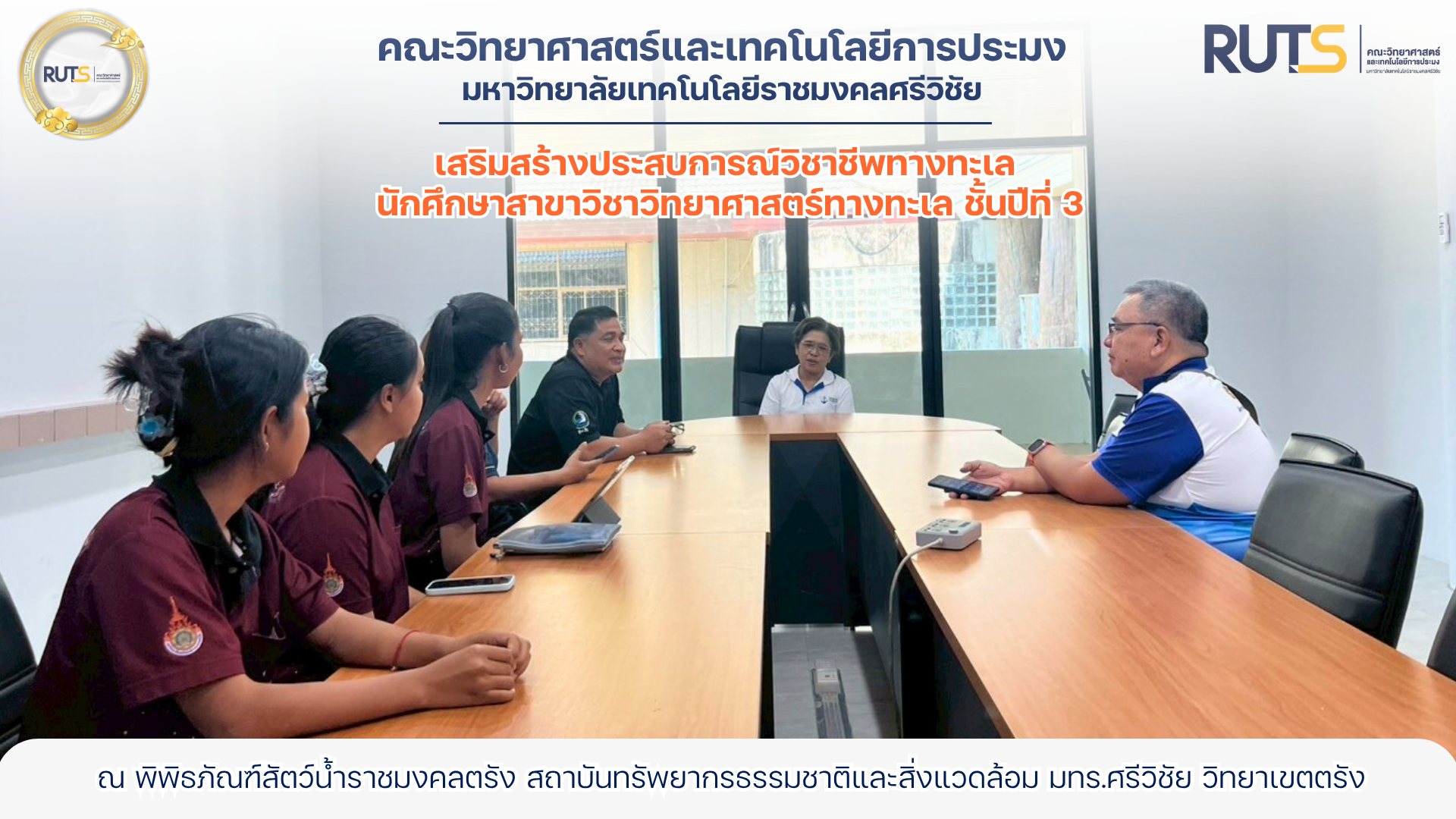 ในการนี้ ได้รับเกียรติจาก ผู้ช่วยศาสตราจารย์ ดร.ชาญยุทธ สุดทองคง อาจารย์ประจำสาขาวิชาวิทยาศาสตร์ทางทะเล เข้านิเทศ พร้อมทั้งให้คำแนะนำอย่างใกล้ชิด เพื่อเสริมสร้างประสบการณ์และเติมเต็มความรู้ให้กับนักศึกษา ณ พิพิธภัณฑ์สัตว์น้ำราชมงคลตรัง สถาบันทรัพยากรธรรมชาติและสิ่งแวดล้อม มทร.ศรีวิชัย วิทยาเขตตรัง