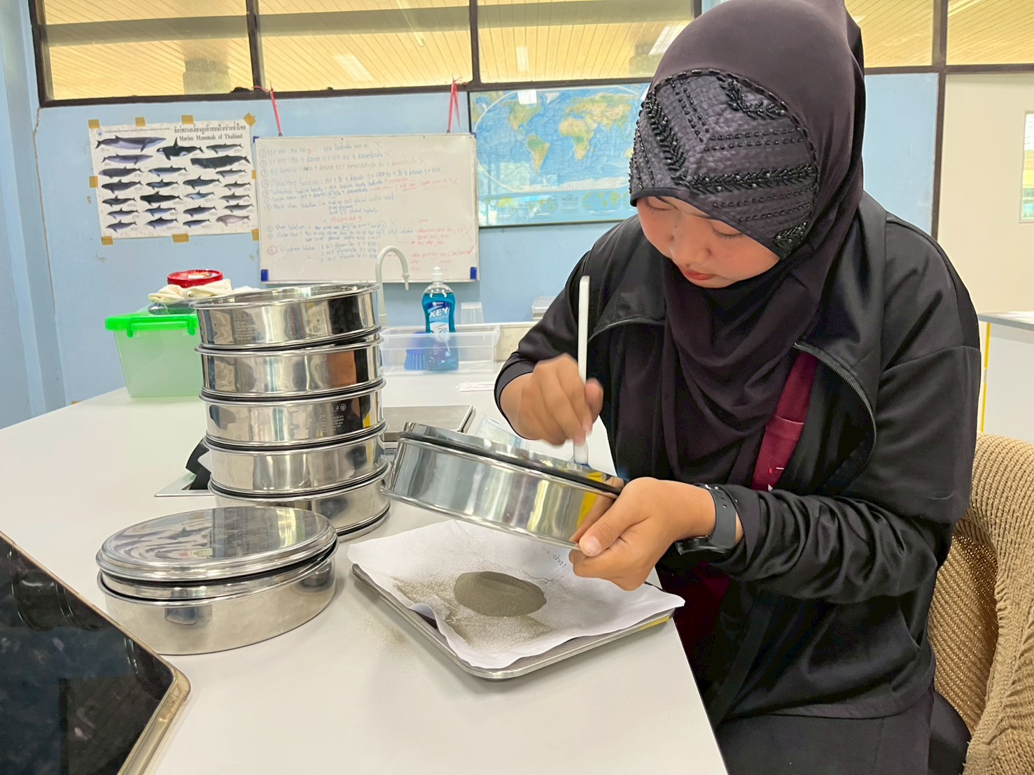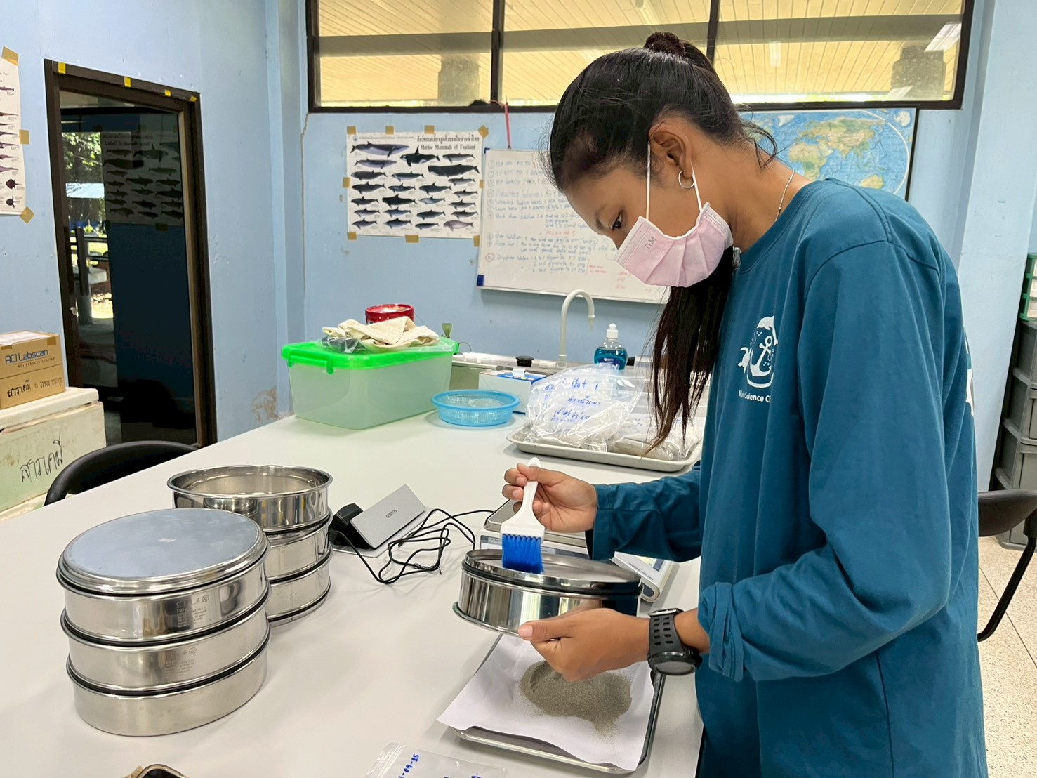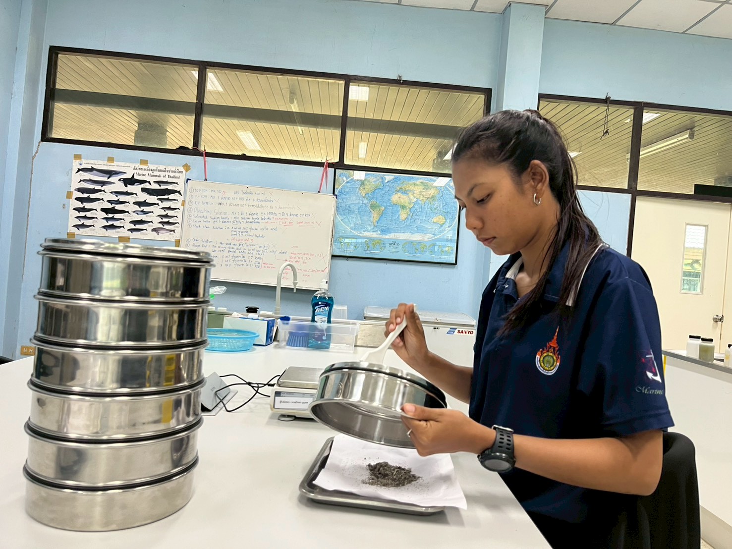 นักศึกษาสาขาวิชาวิทยาศาสตร์ทางทะเล ชั้นปีที่ 3 ได้เข้าร่วมฝึกประสบการณ์วิชาชีพ ท่ามกลางบรรยากาศการเรียนรู้ที่เต็มไปด้วยความตั้งใจและความมุ่งมั่น โดยได้ลงมือปฏิบัติจริงในกิจกรรมที่หลากหลาย ทั้งการจำแนกตัวอย่างปลาในห้องปฏิบัติการ การลงพื้นที่เก็บตัวอย่างปลาในระบบนิเวศป่าชายเลน การฝึกดูแลสัตว์น้ำ ณ โรงพยาบาลสัตว์น้ำราชมงคลตรัง ตลอดจนการติดตามและเรียนรู้ด้านคุณภาพสิ่งแวดล้อมชายฝั่งอย่างใกล้ชิด