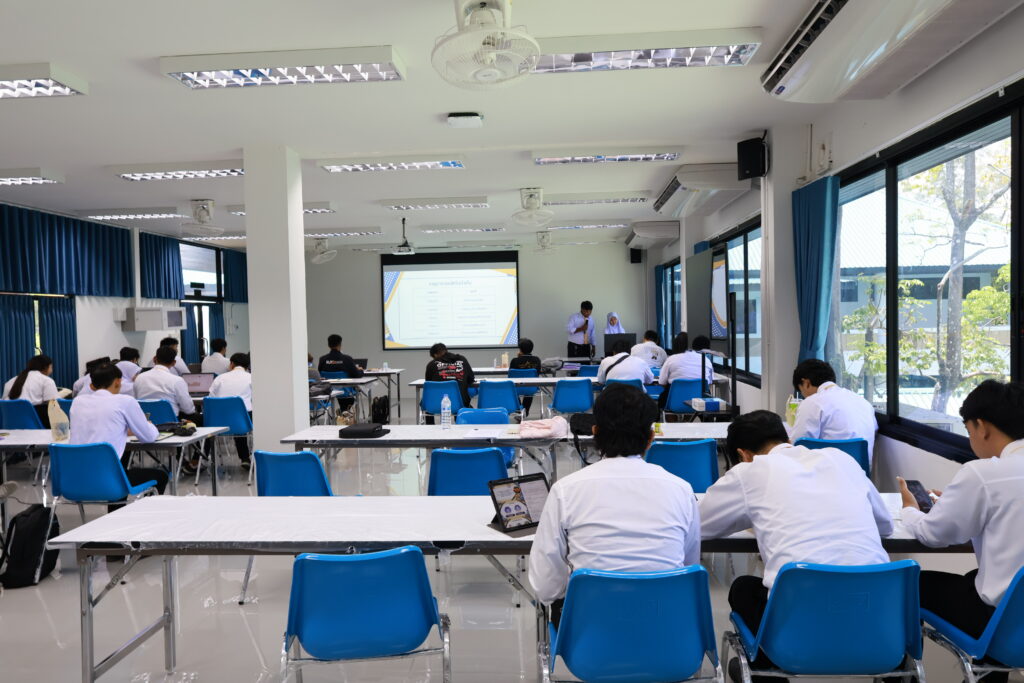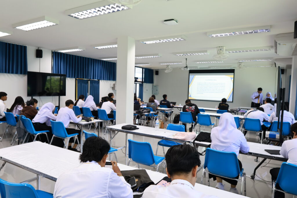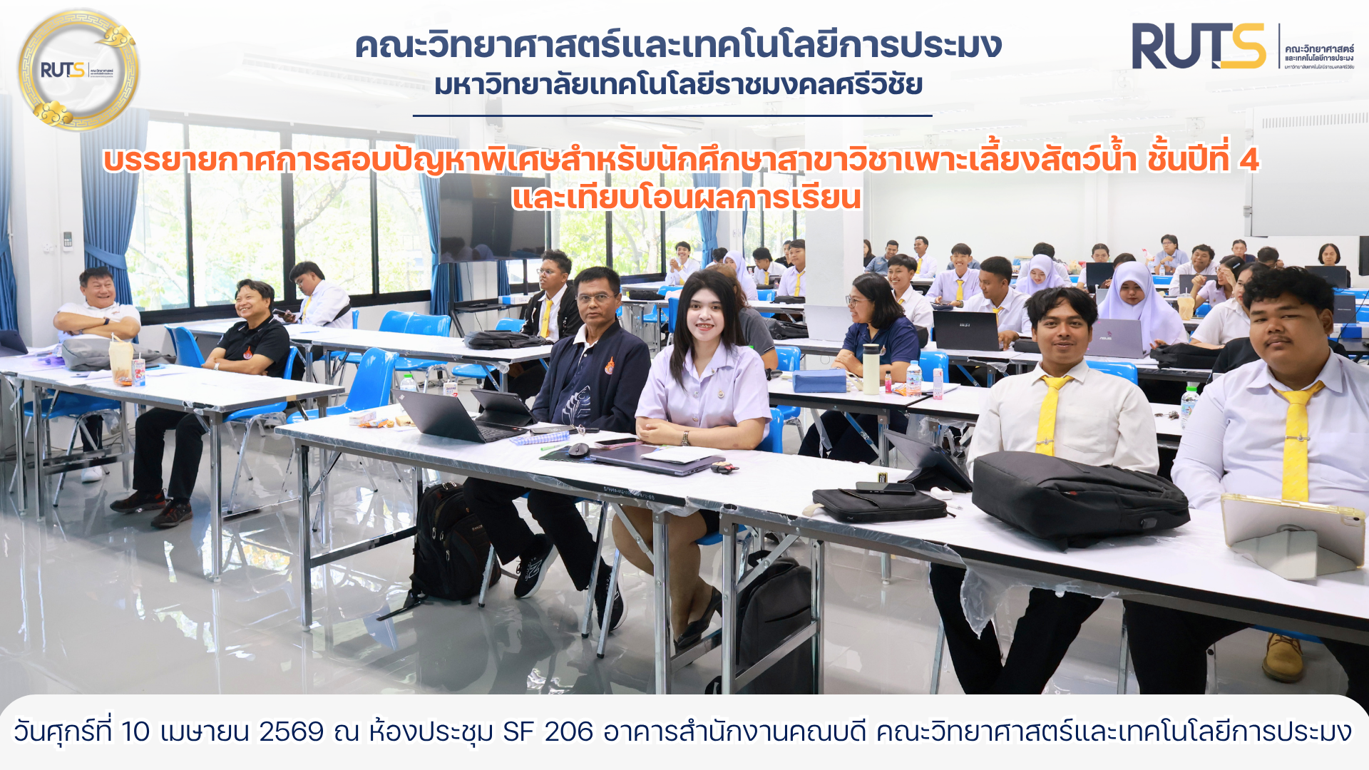บรรยายกาศการสอบปัญหาพิเศษสำหรับ นักศึกษาสาขาวิชาเพาะเลี้ยงสัตว์น้ำ ชั้นปีที่ 4 และนักศึกษาเทียบโอนผลการเรียน เพื่อประเมินความรู้ ความสามารถทางวิชาการ และทักษะด้านการวิจัย ซึ่งนับเป็นอีกหนึ่งก้าวสำคัญในการเตรียมความพร้อมสู่การเป็นบัณฑิตที่มีคุณภาพ ในวันศุกร์ที่ 10 เมษายน 2569 ณ ห้องประชุม SF 206 อาคารสำนักงานคณบดี คณะวิทยาศาสตร์และเทคโนโลยีการประมง